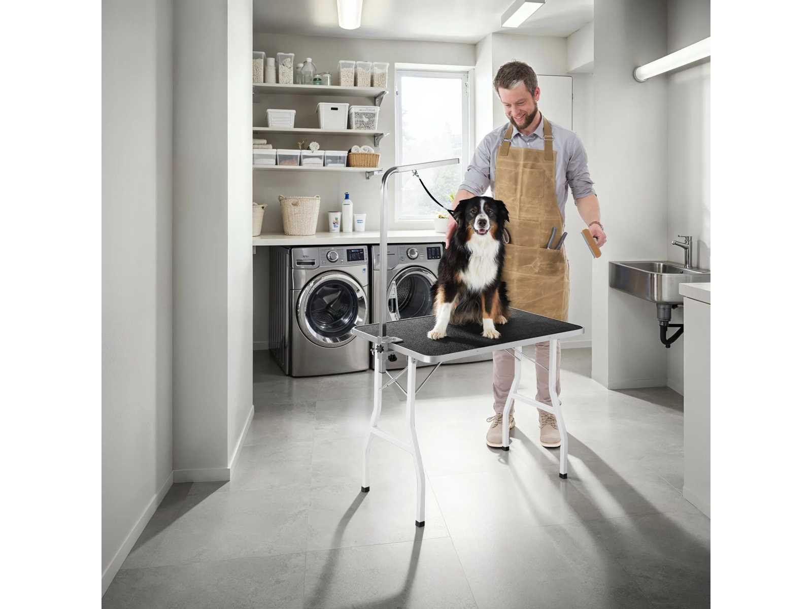 Dimensions totales (lxPxH) : environ 98 x 60 x 88,5 - 156,5 cm Hauteur de la table : environ 76 cm Dimensions pliée (lxPxH) : environ 90,5 x 60 x 11 cm Dimensions plateau de table (lxPxH) : environ 90,5 x 60 x 2,5 cm Diamètre tige de la potence : environ 23 mm Diamètre pied de la table : environ 25 mm Capacité de charge : 60 kg Poids : environ 13,9 kg Matériau : acier, panneau d'aggloméré, alliage aluminium, revêtement caoutchouc Non