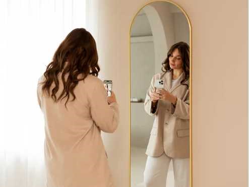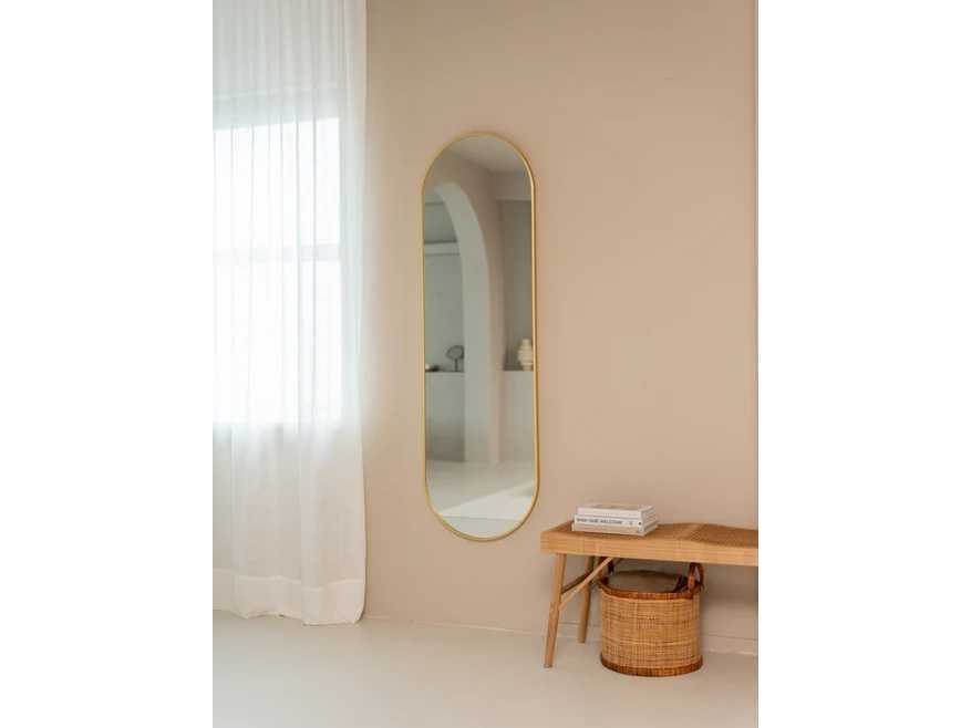 Couleur Or Dimensions 40x140 cm Forme Ovale Matériau Verre, aluminium Contenu de l'emballage 1 x Miroir Non