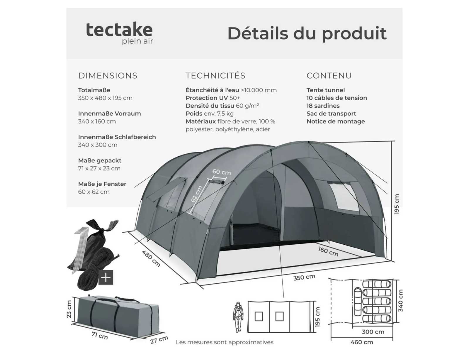 Dimensions totales (LxlxH) : env. 350 x 480 x 195 cm Dimensions intérieures de l’entrée (Lxl) : env. 160 x 340 cm Non