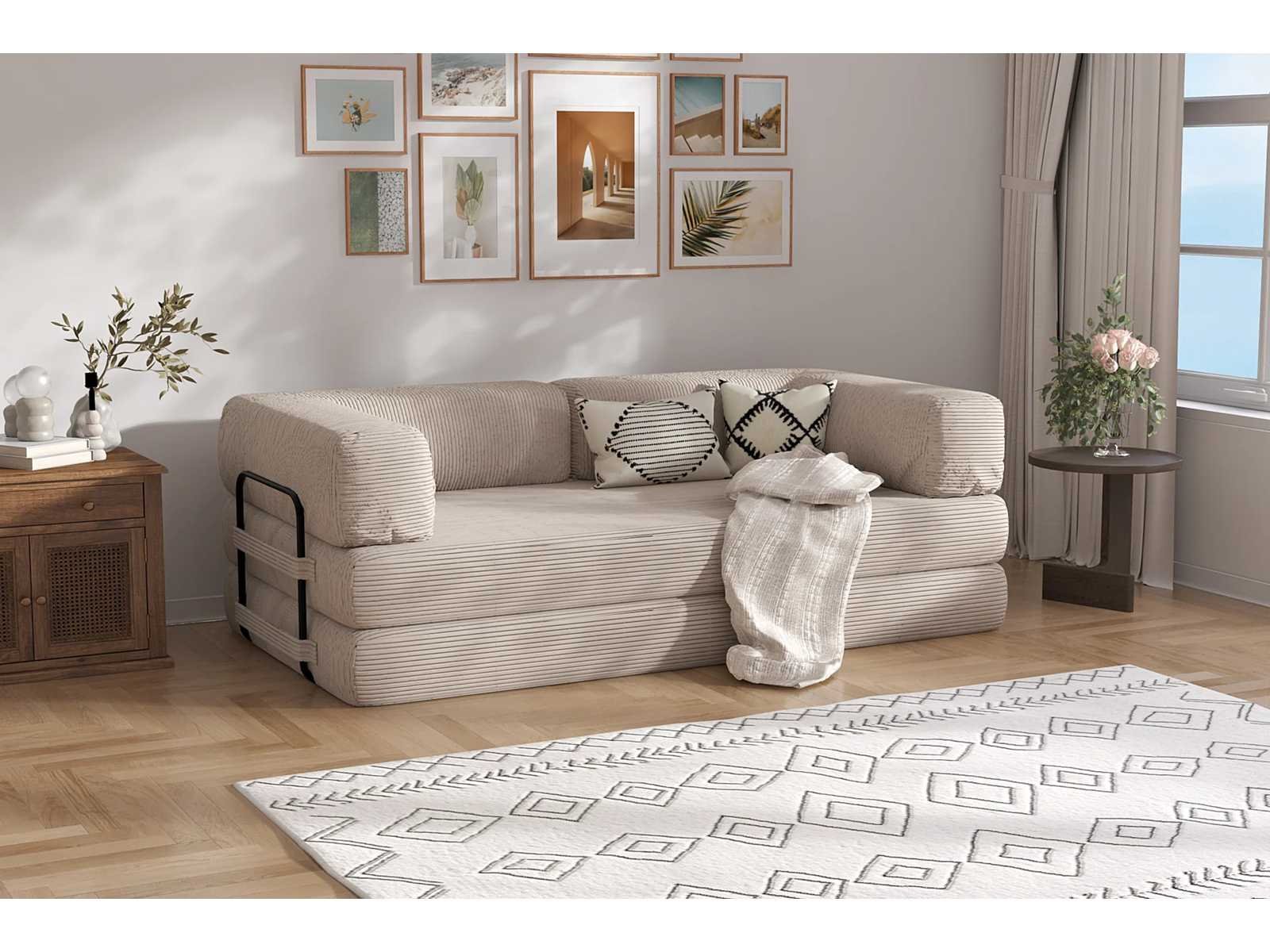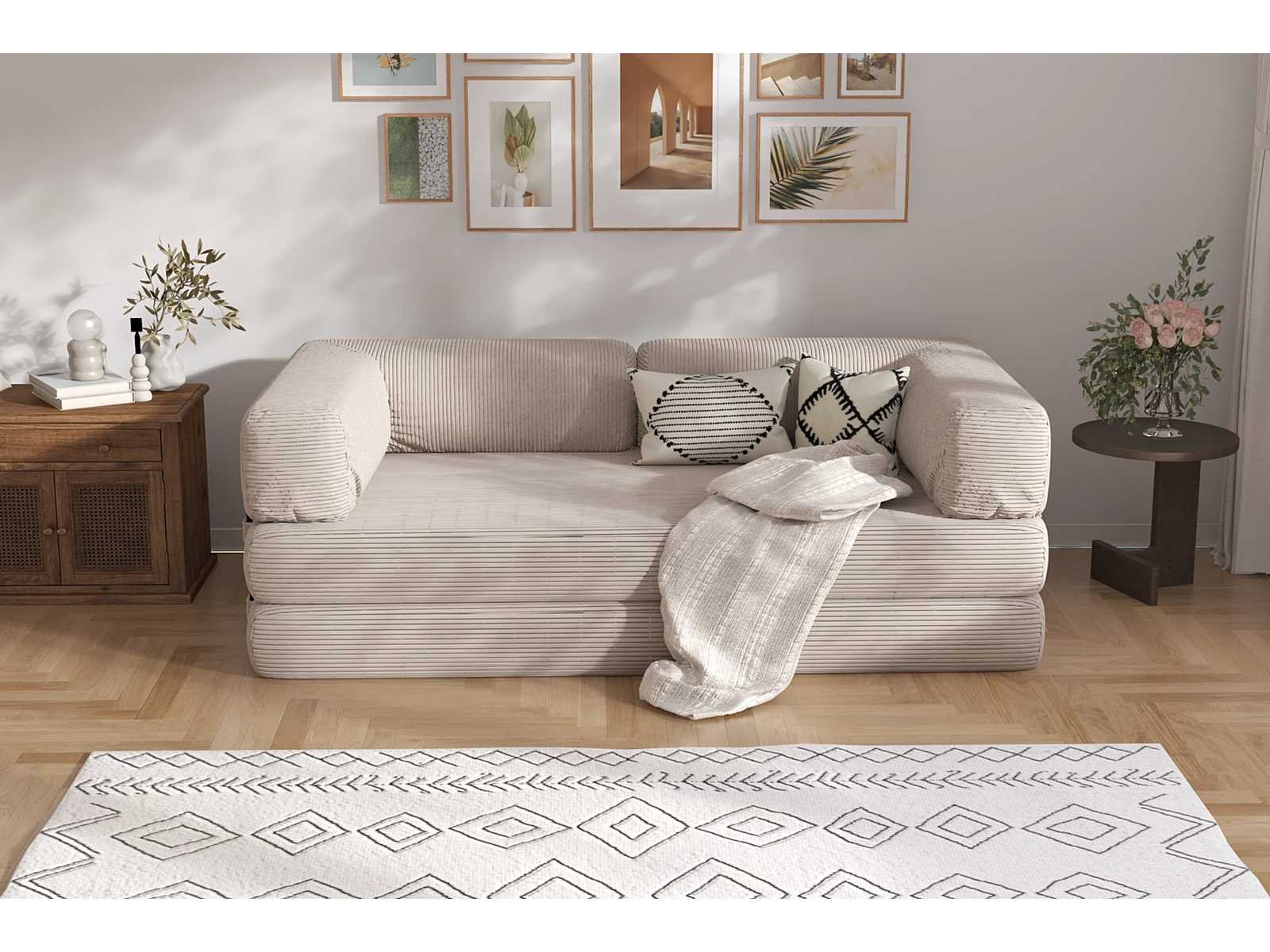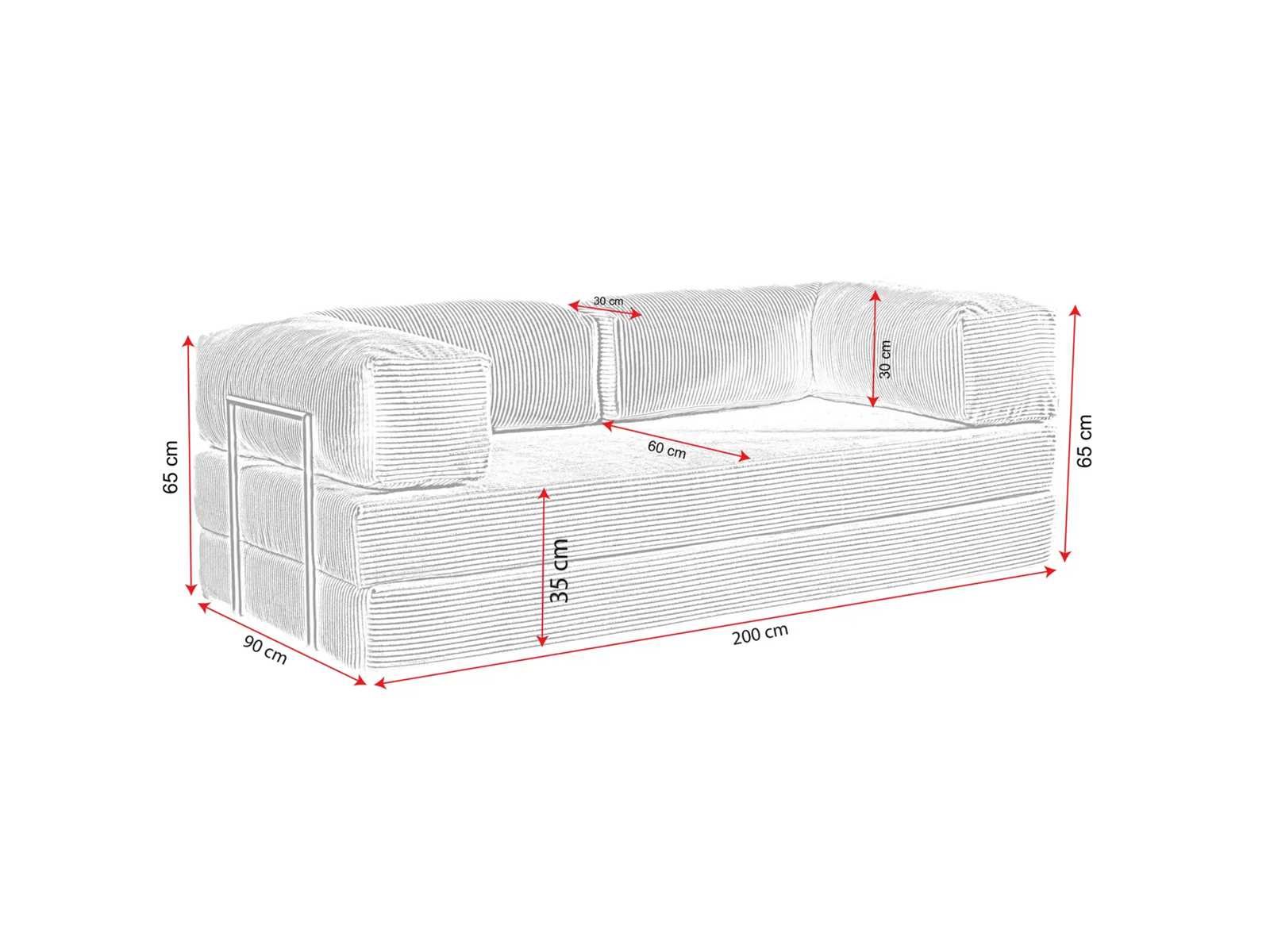 Dimension: Longueur : 200 cm Profondeur : 90 cm Hauteur : 34 cm Densité de la mousse : La densité de la mousse utilisée est de 30 kg/m³, offrant ainsi un bon équilibre entre confort et soutien. Non