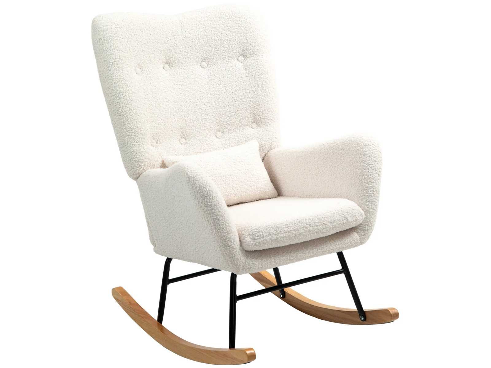 Spécifications: - Couleur : Crème - Matériaux : Tissu Teddy, mousse, métal, bois de caoutchouc - Dimensions : 69L x 92P x 100H cm - Taille de l'assise : 48L x 53P x 42-50H cm - Taille du dossier : 66L x 64H cm - Capacité de charge totale : 120 kg Non