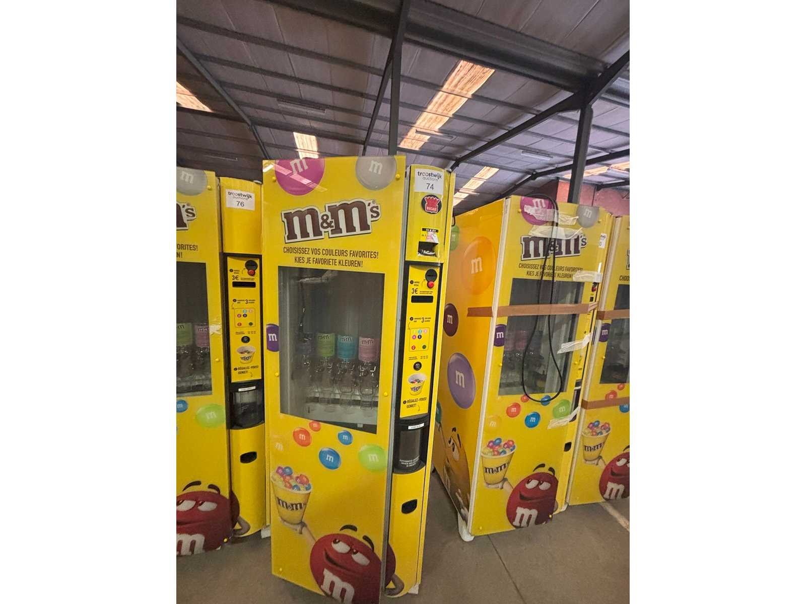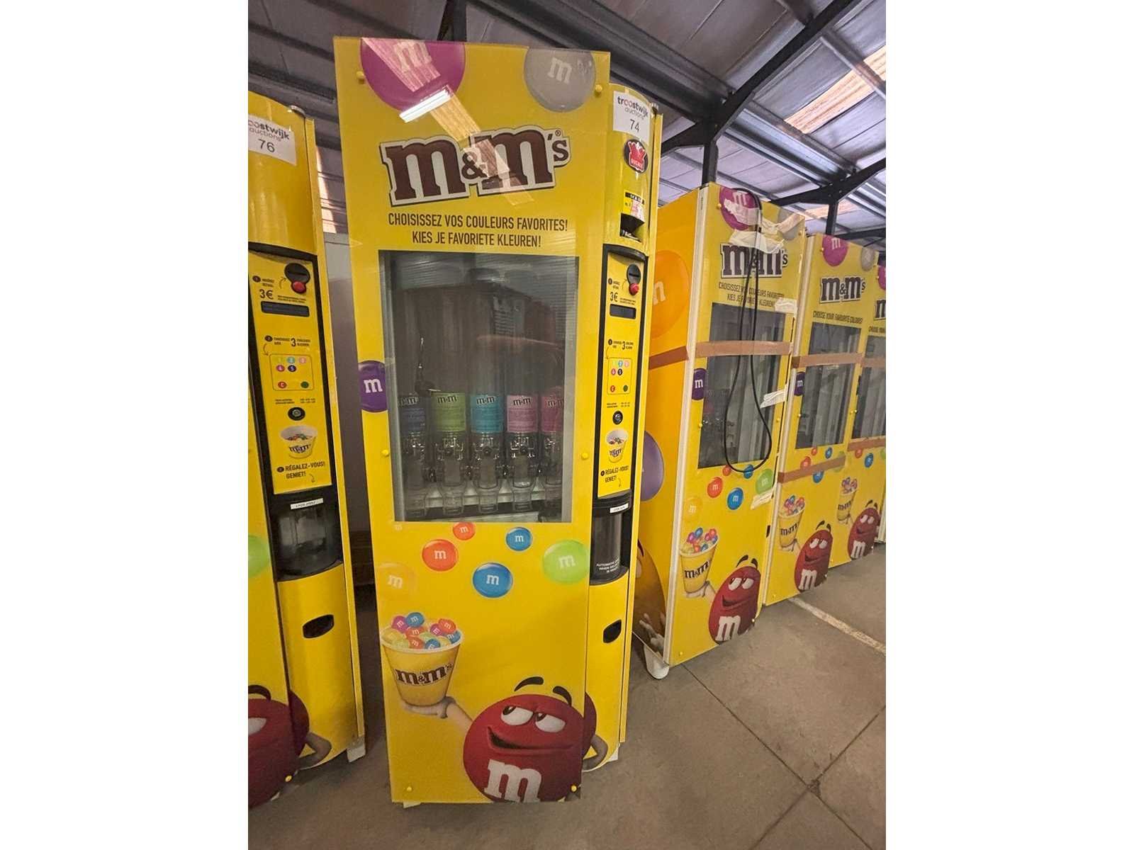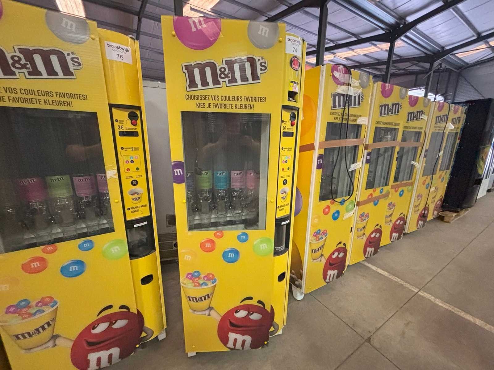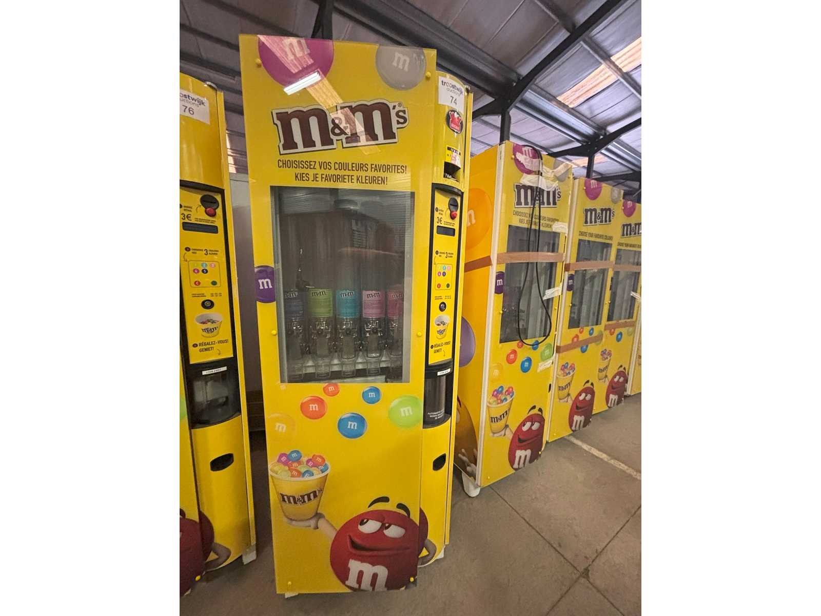 Automaat voor verkoop van M&M's of andere soorten snoep of nootjes in staat waarin toestel zich bevindt Nee Merk: Ducale Model: Bulkvendor Kleur: Geel Gewicht: 250kg Lengte: 80cm Breedte: 80cm Hoogte: 183cm