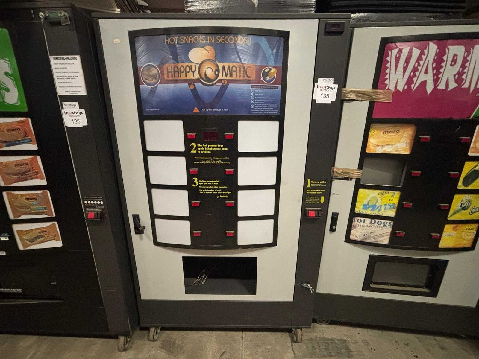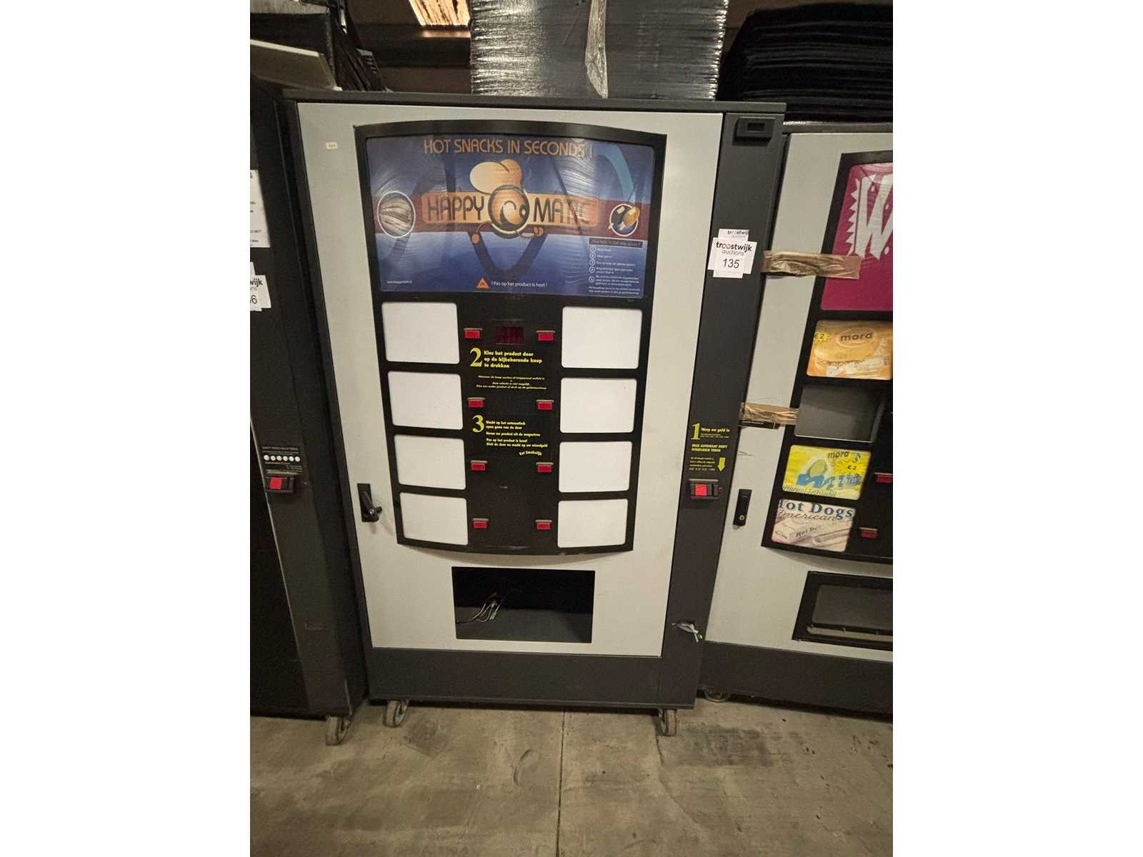 Warme snackautomaat met 8 selecties voor verkoop van diverse snacks in staat waarin het zich bevindt Nee Merk: Happy O Matic Gewicht: 300kg Lengte: 110cm Breedte: 78cm Hoogte: 183cm