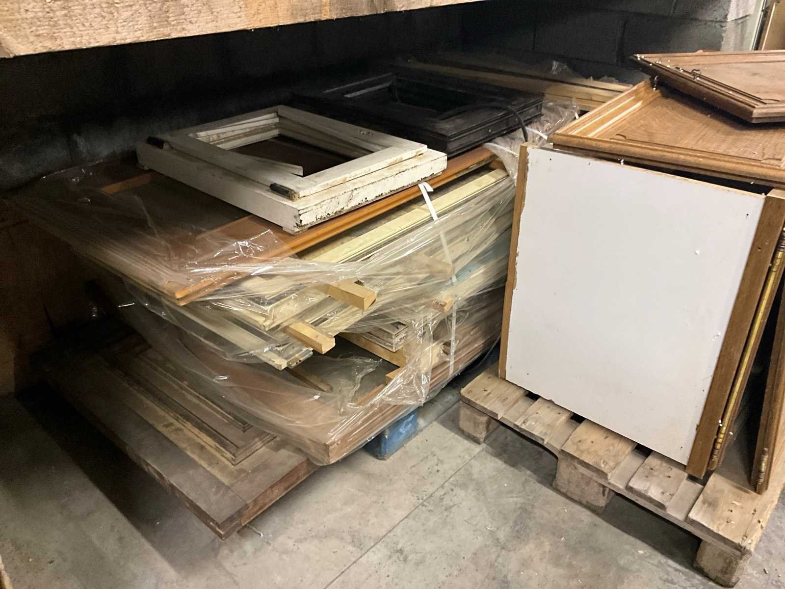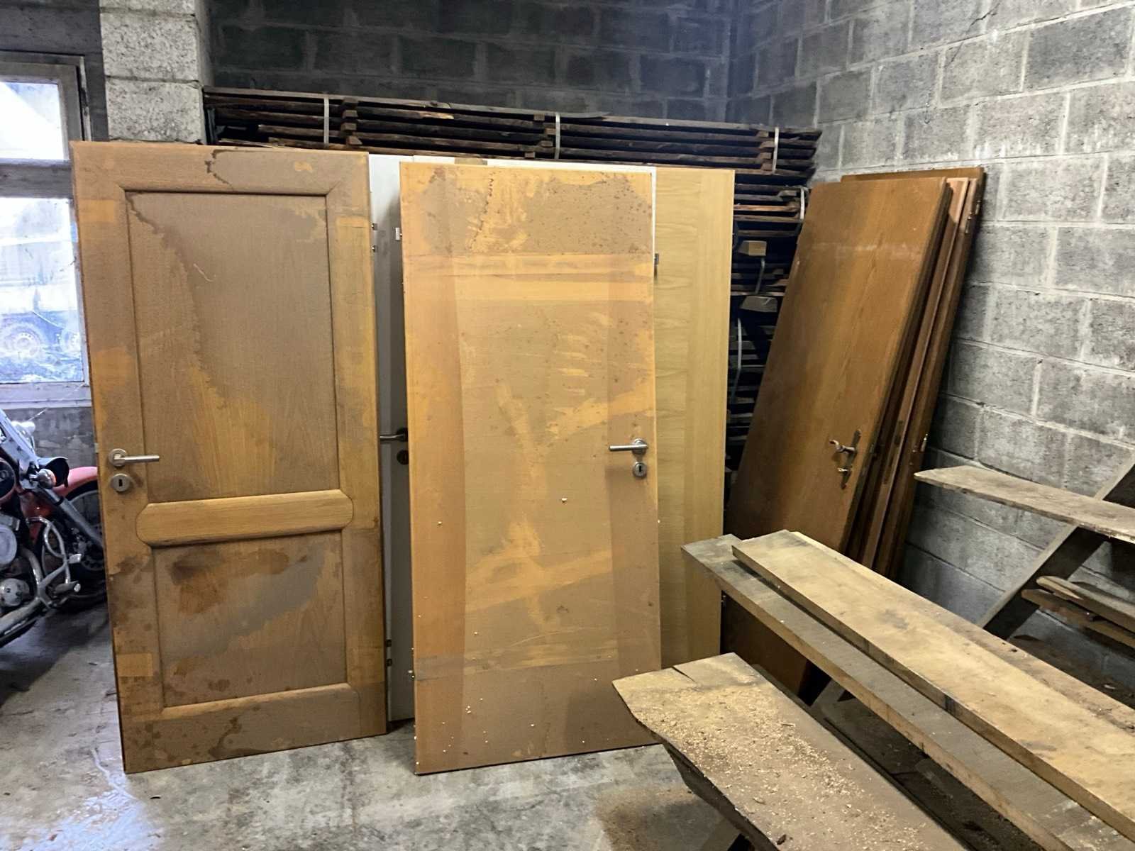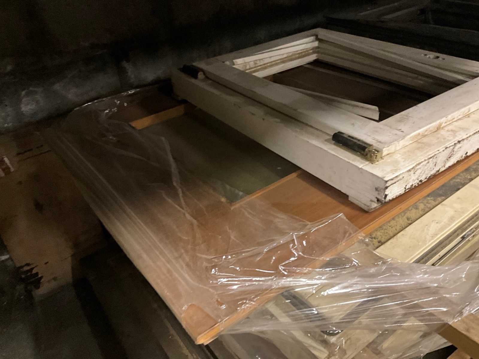 Waaronder 10 diverse houten binnendeuren, 9 diverse houten en kunstoffen raam en deur chassis in diverse maten, 3 diverse houten kasten waaronder met afmetingen:90x56x214 en 126x60x90cm, piano met afmeting; 150x65x125cm, afgifte volgens aanwijzing Non