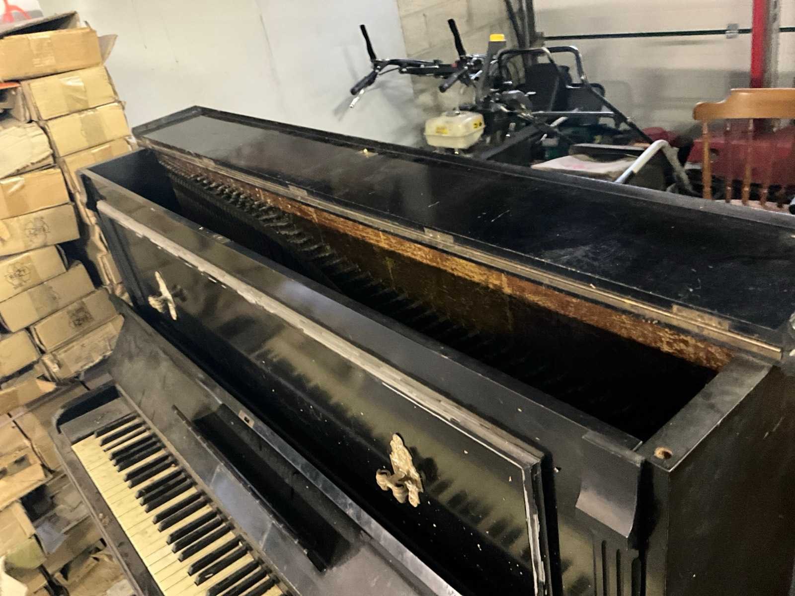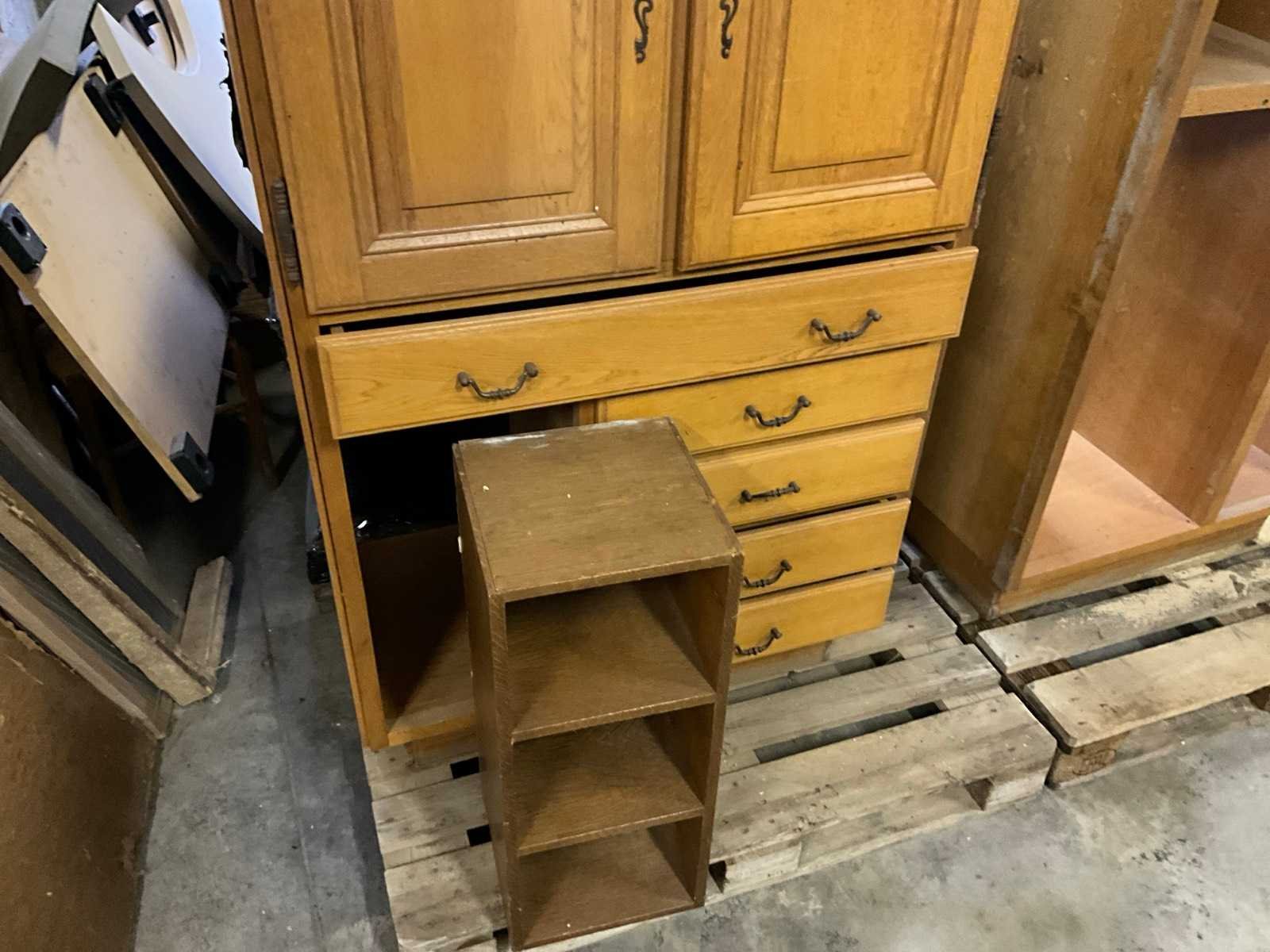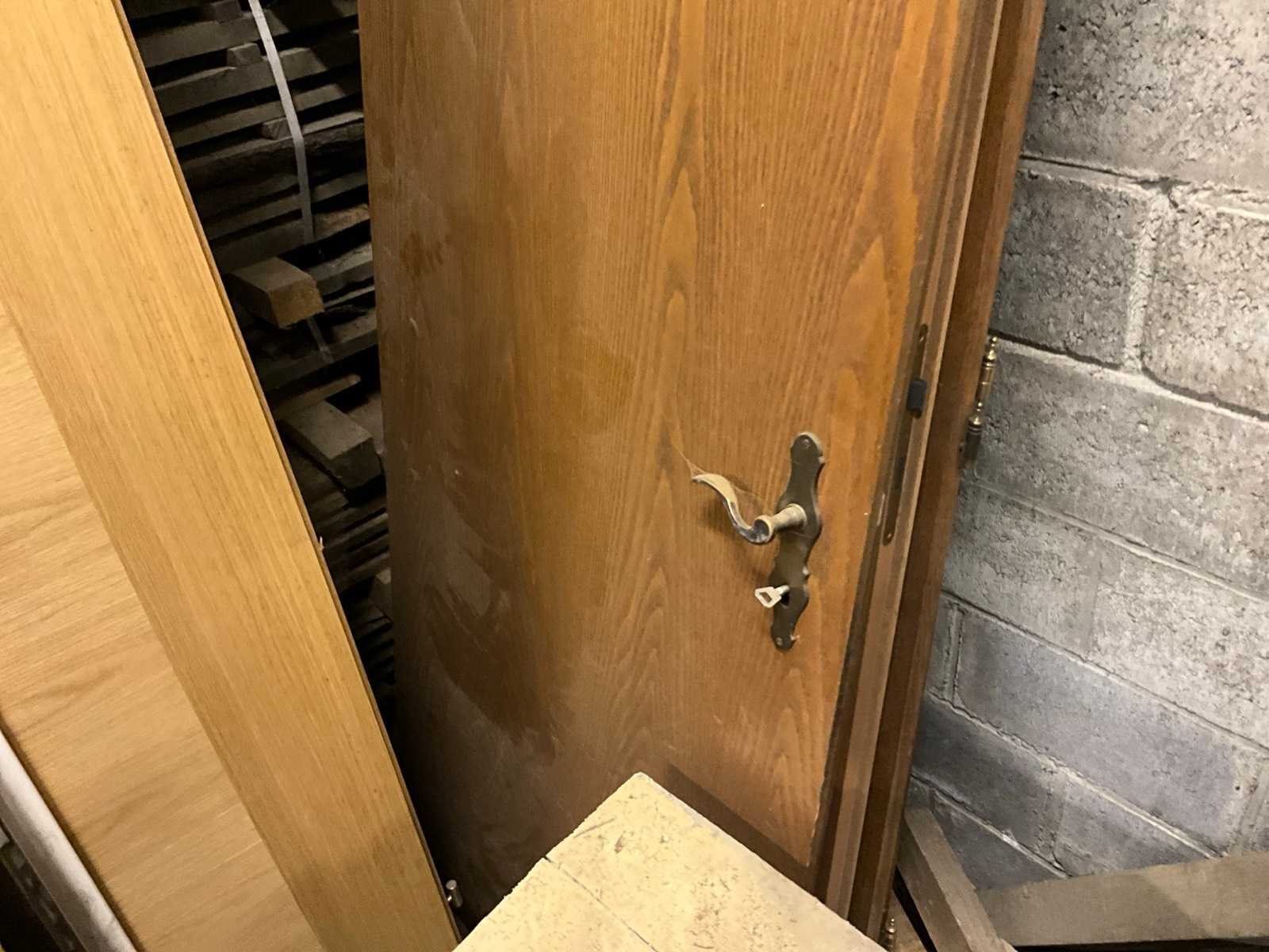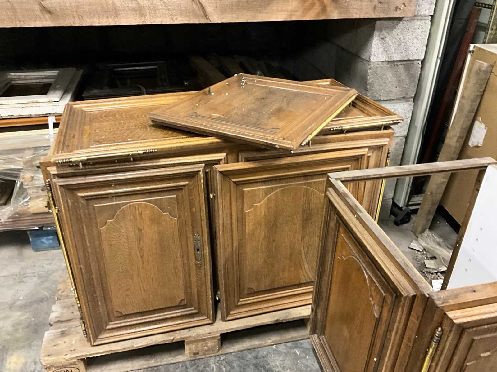 Waaronder 10 diverse houten binnendeuren, 9 diverse houten en kunstoffen raam en deur chassis in diverse maten, 3 diverse houten kasten waaronder met afmetingen:90x56x214 en 126x60x90cm, piano met afmeting; 150x65x125cm, afgifte volgens aanwijzing Non