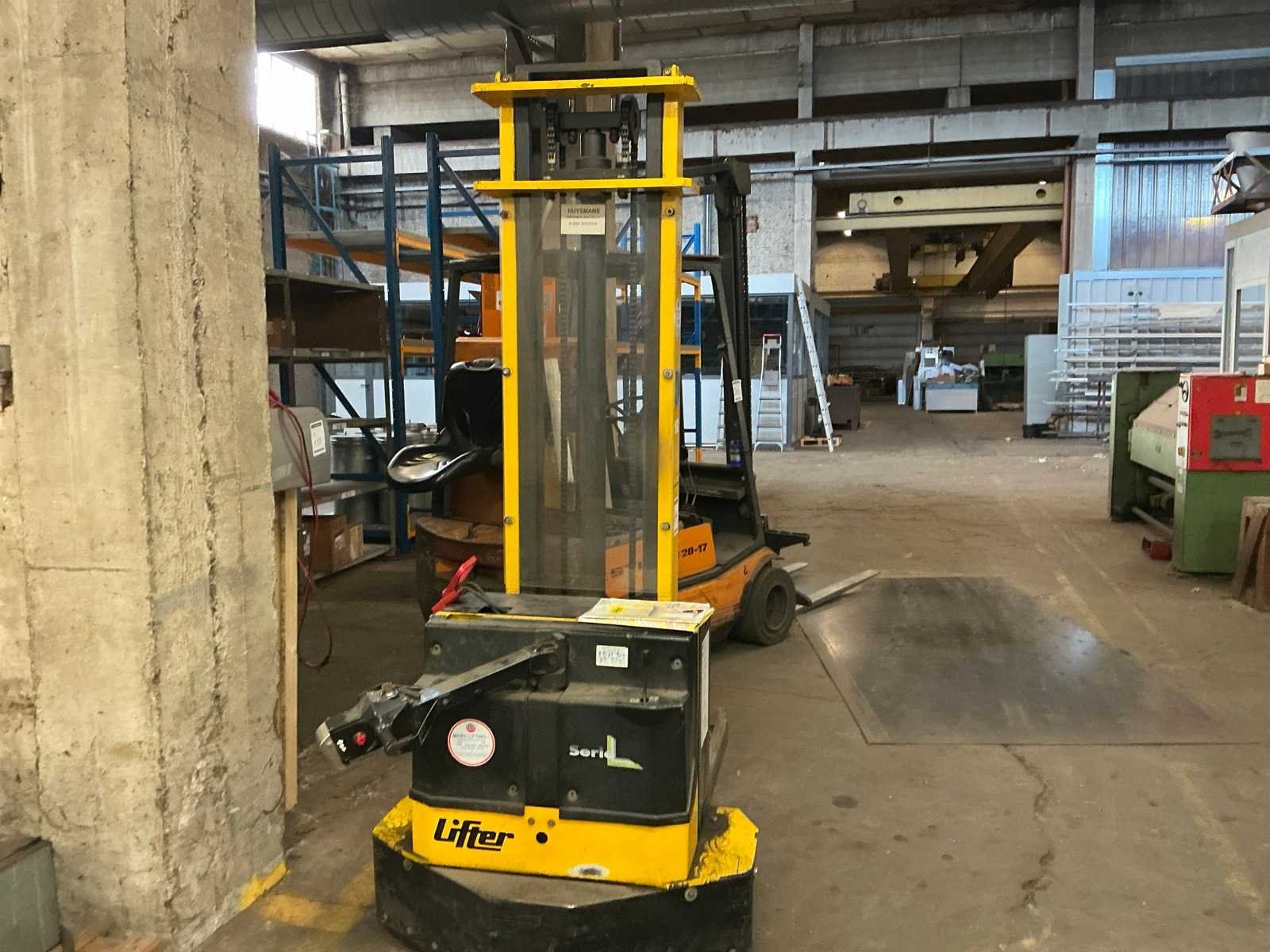 Nee Merk: Lifter Type: L16/3 Bouwjaar: 1995 Serienummer: 004889 Hefvermogen: 1600kg Hefhoogte: 3500mm Lepellengte: 1140mm Eigen gewicht: 885kg Accu lader: true