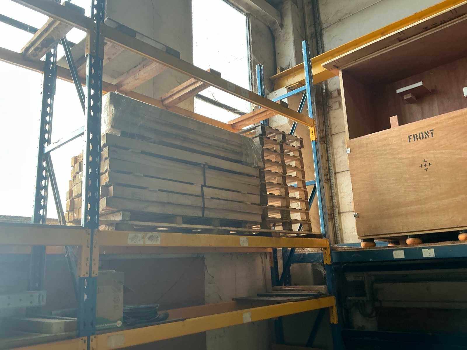 Afmeting staanders: 1000x4500mm/ lengte liggers: 2700mm/ Inclusief: inhoud/ inhoud bestaande uit houten balken, kleine partij machineonderdelen Nee Aantal staanders: 5 Aantal liggers: 32