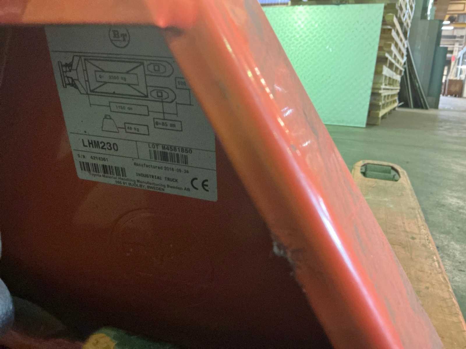 Nee Merk: BT Lifter Type: LHM230 Hefvermogen: 2300kg Lepellengte: 1140mm Eigen gewicht: 68kg