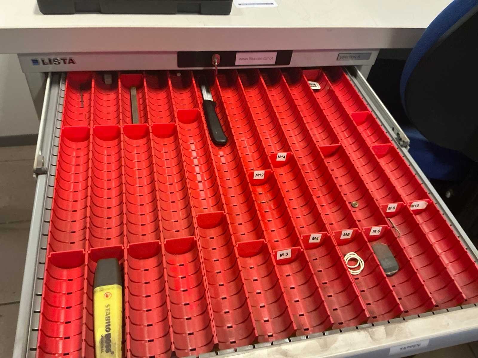 Voorzien met 2 Lista type selection 75 ladekasten/ inclusief inhoud ladekasten en 1 bureaustoel Nee Merk: Lista Lengte: 200cm Breedte: 280cm Hoogte: 91cm