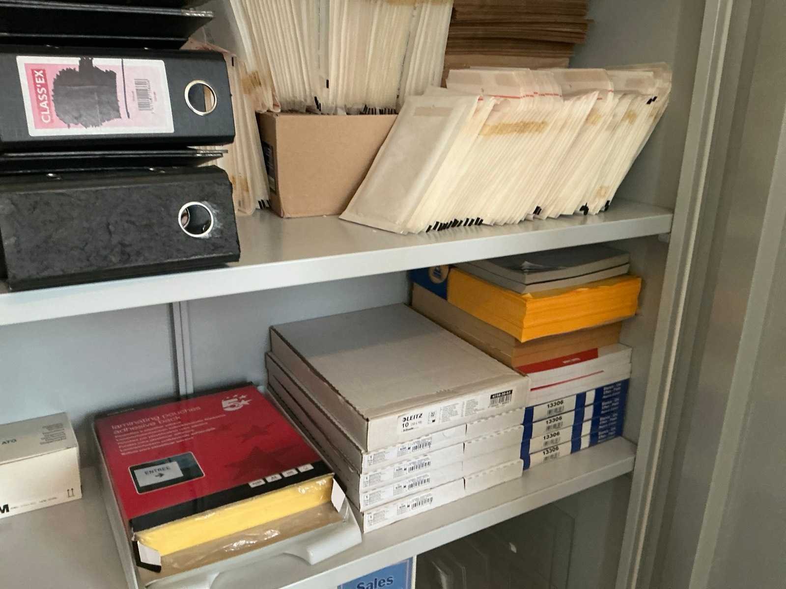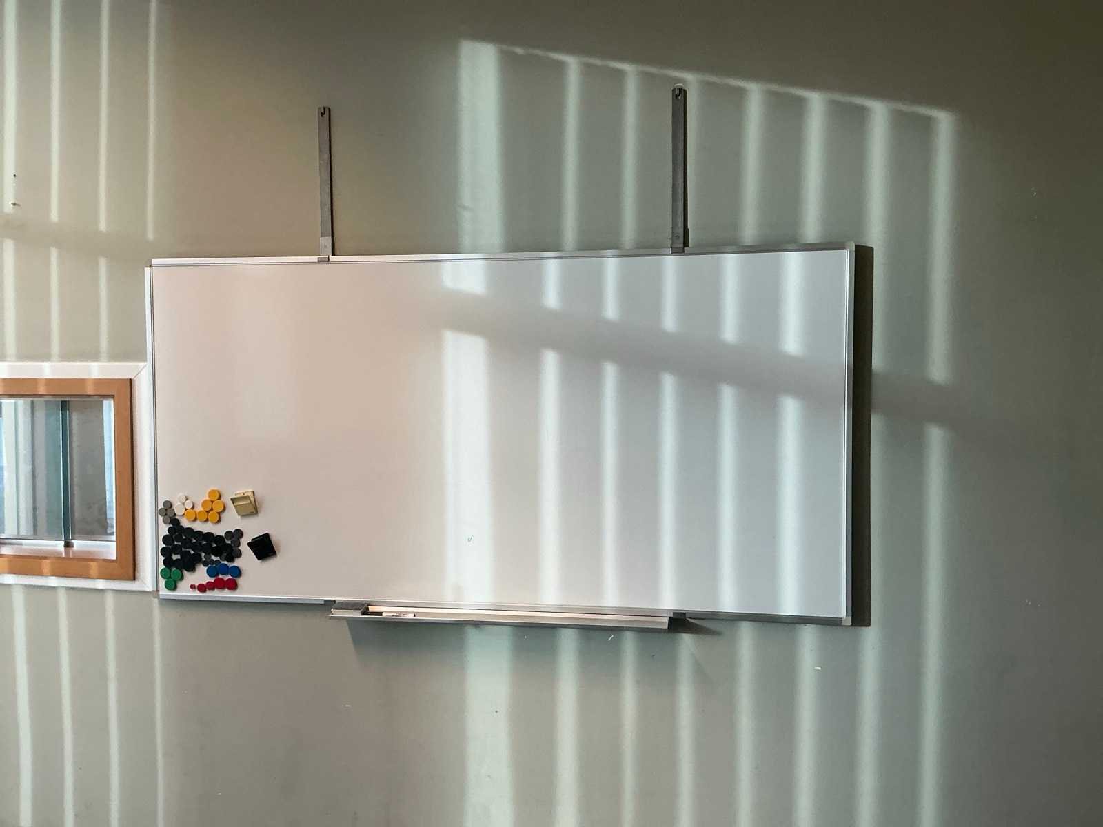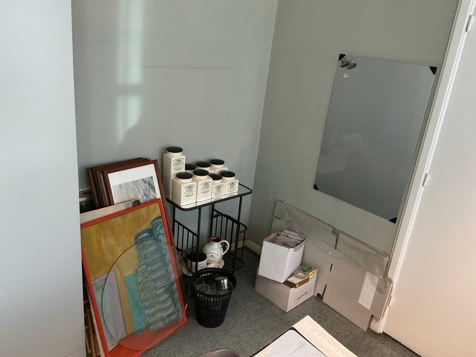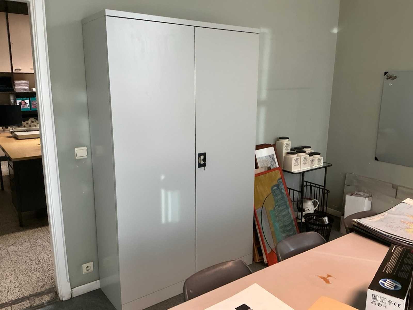 Bestaande uit , hoekopgesteld bureau, 1 bureaustoel, 1 x 2-deurs archiefkast, whiteboard, 3 stapelbare stoelen, diverse decoratie Nee