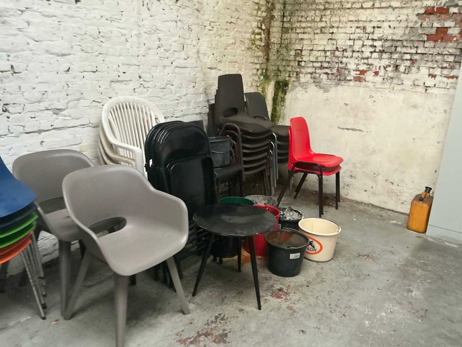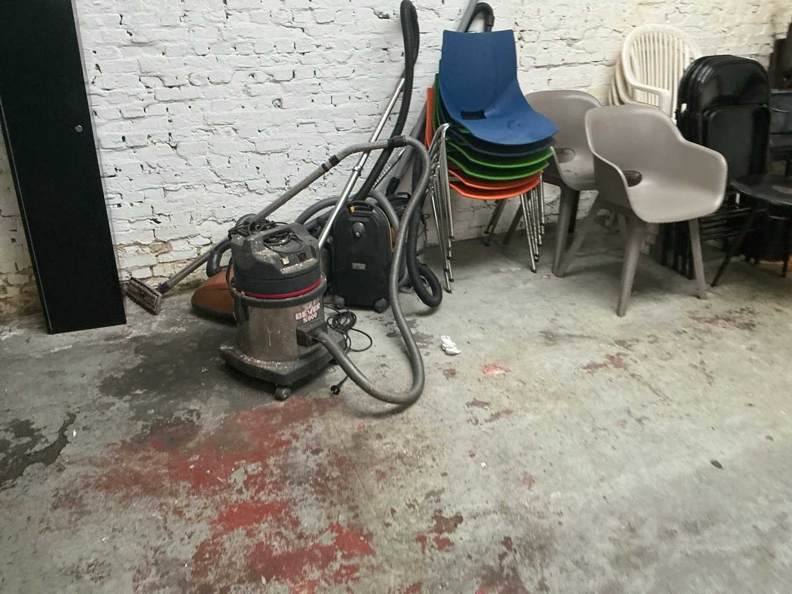 Waaronder: 4 diverse tafels, 4 oude stofzuigers, 1 metalen 2-deurs archiefkast, diverse stoelen Nee
