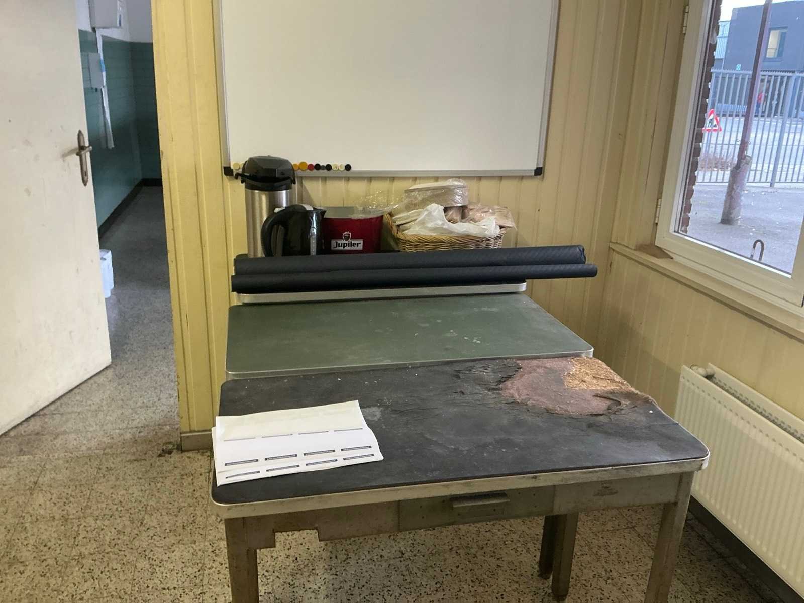 Inclusief: 11 stapelbare stoelen , 1 thermoskannen, 1 waterkoker, 1 whiteboard/ kledij niet inbegrepen Nee