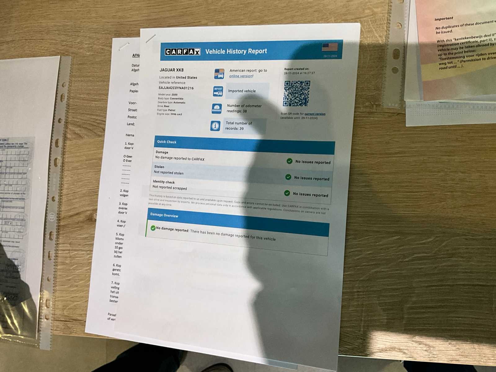 Geïmporteerd uit Californië. Reeds gedouaneerd in België, direct in te schrijven. Deze Jaguar XK8 is een zeer mooi exemplaar, de originele kleurcode PED Anthracite Metallic lak straalt nog steeds met diepe glans, slechts enkele minimale gebruikerssporen zijn aanwezig bij deze youngtimer , die verwacht mogen worden bij de leeftijd. Het interieur van deze Jaguar is net zo aantrekkelijk als het exterieur. Het originele lederen interieur is in goede staat. Het dashboard is netjes en goed onderhouden, met alle knoppen en schakelaars in goede werking. De zachte, hoogwaardige materialen zorgen voor een luxe gevoel dat elke rit tot een plezier maakt. De nette soft top is eenvoudig te bedienen en verkeert in prima staat, perfect voor zonnige dagen. Deze Jaguar is oorspronkelijk nieuw geleverd in het zonnige California, USA. Een meegeleverd CLEAN CARFAX document bevestigd dat de auto niet alleen regulier onderhouden is (28 geregistreerde onderhoudsbeurten naast de reguliere inspecties) maar tevens een schade vrije historie kent. Tevens bevestigd het Carfax document de lage mijlenstand (73.300) van deze Jaguar. Deze auto wordt aangeboden met een Amerikaanse title en een e705 douane document . De wagen moet nog door de koper keuring klaar gemaakt en gekeurd worden. Dit betekent dat de auto momenteel niet gekeurd is en niet klaar is voor de openbare weg (start en rijd perfect). ABS / Airbag bestuurder / Airbag passagier / Alarm / Antispin / Automatic airconditioning / Boordcomputer / CD / Centrale vergrendeling / Centrale vergrendeling afstand / Cruise Control / ESP / Elektrische achterklep / Elektrische buitenspiegels / Elektrische ruiten / Elektrische zetelverstelling / Lederen stuurwiel / Lichtmetalen velgen / Middenarmsteun / Mistlampen / Multifunctioneel stuur / Navigatiesysteem / Open Dak / Radio / Servostuur / Soundsystem / Startonderbreking / Zetelverwarming Nee Merk: Jaguar Model: XK8 Bouwjaar: 1999 Afgelezen kilometerstand: 118000km Cilinderinhoud: 3996cc Vermogen (kW): 209kW Brandstof: benzine Afgelezen mijlenstand: 73386mi Chassisnummer: SAJJA42C0YNA01216 Datum eerste toelating: 10/1999 Transmissie: Automaat Inschrijvingsbewijs - deel 1 : Aanwezig Inschrijvingsbewijs - deel 2: Aanwezig