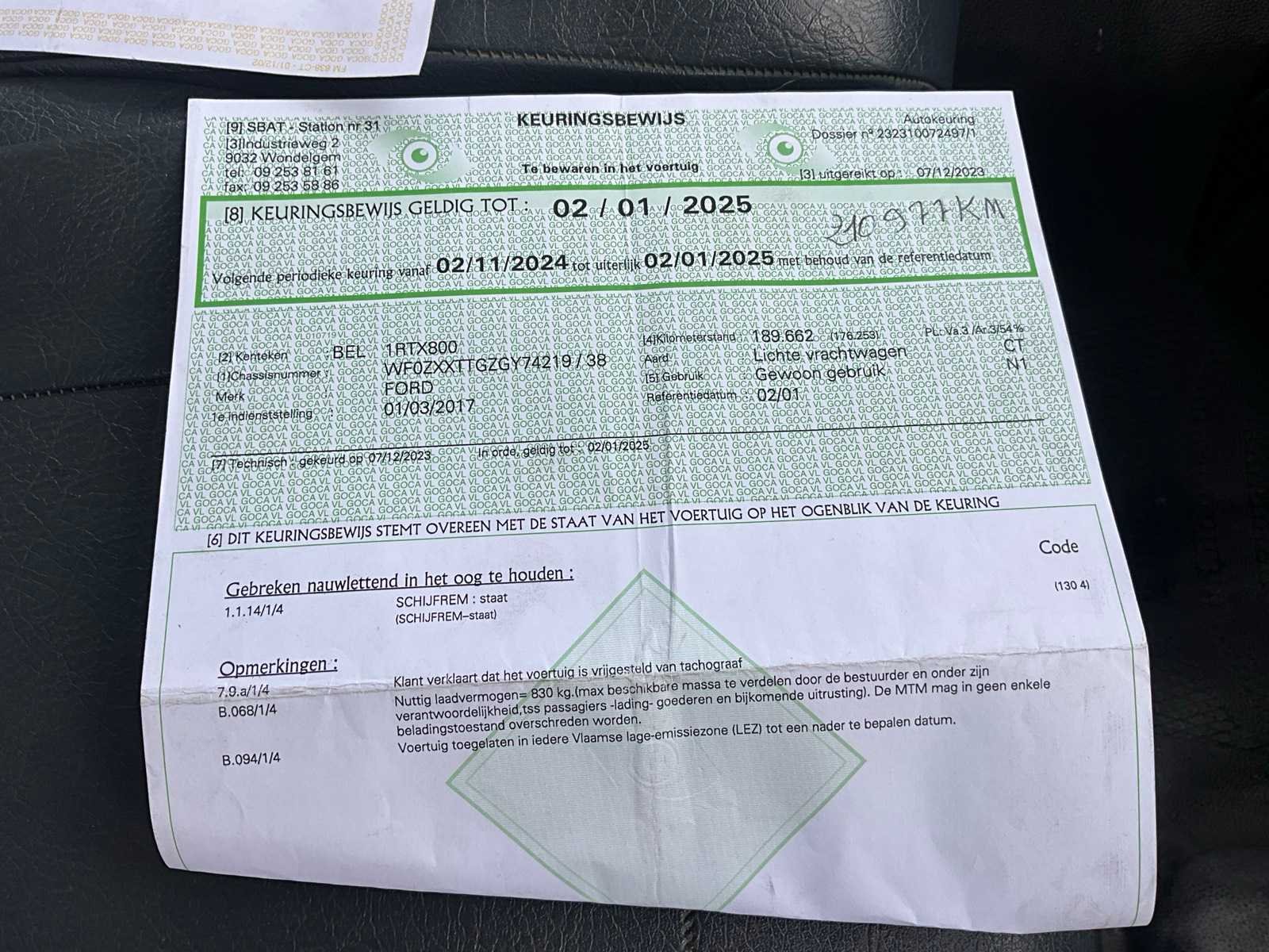Net onderhoud gekregen nieuwe olie en filters. Nee Merk: Ford Model: Transit Bouwjaar: 2017 Afgelezen kilometerstand: 211156km Cilinderinhoud: 1995cc Vermogen (kW): 77kW Brandstof: diesel Chassisnummer: WF0ZXXTTGZGY74219 Datum eerste toelating: 01/03/2017 Nationaliteit documenten: Belgisch Start en rijdt: Ja startinformatie : Start en rijdt Inschrijvingsbewijs - deel 1 : Aanwezig Inschrijvingsbewijs - deel 2: Aanwezig