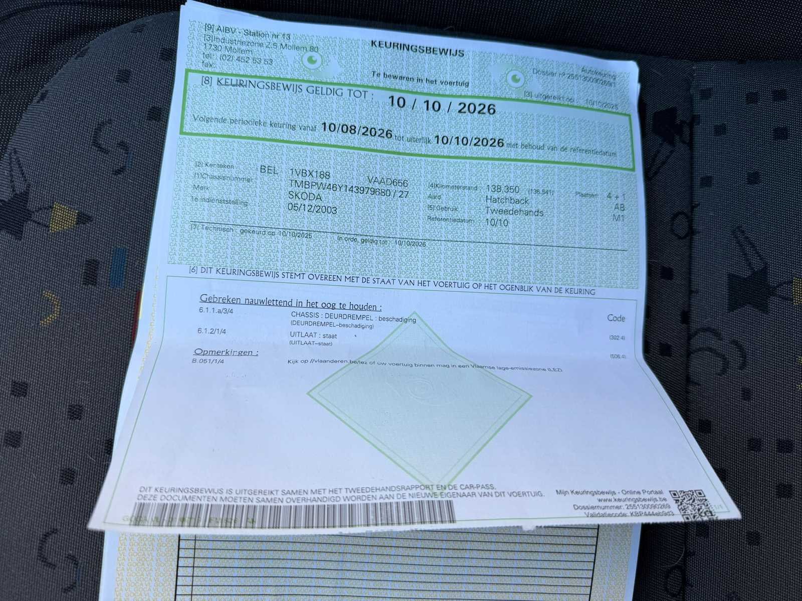 Nee Merk: Skoda Model: Fabia Bouwjaar: 2003 Afgelezen kilometerstand: 138623km Cilinderinhoud: 1198cc Vermogen (kW): 40kW Brandstof: benzine Chassisnummer: TMBPW46Y143979680 Datum eerste toelating: 05/12/2003 Transmissie: Handgeschakeld Nationaliteit documenten: Belgisch Start en rijdt: Ja startinformatie : Start en rijdt Inschrijvingsbewijs - deel 1 : Aanwezig Inschrijvingsbewijs - deel 2: Aanwezig
