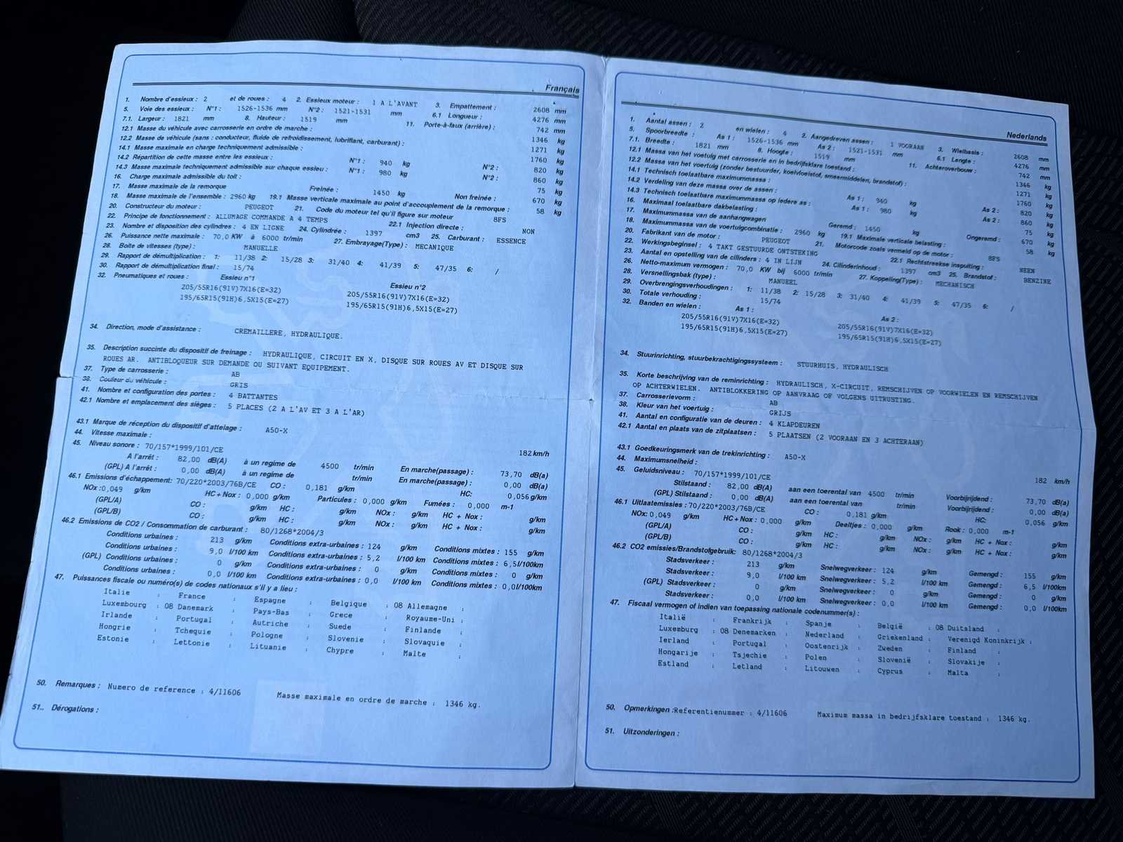 Nee Merk: Peugeot Model: 308 Bouwjaar: 2009 Afgelezen kilometerstand: 127654km Cilinderinhoud: 1397cc Vermogen (kW): 70kW Brandstof: benzine Chassisnummer: VF34C8FSC9S181452 Datum eerste toelating: 07/12/2009 Transmissie: Handgeschakeld Nationaliteit documenten: Belgisch Start en rijdt: Ja startinformatie : Start en rijdt Inschrijvingsbewijs - deel 1 : Aanwezig Inschrijvingsbewijs - deel 2: Aanwezig