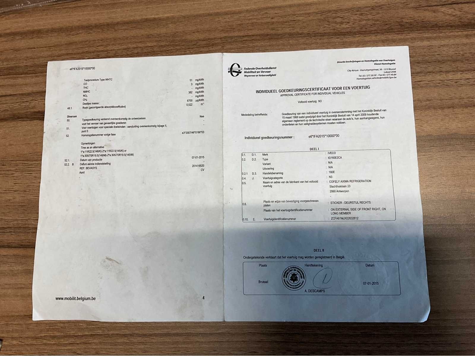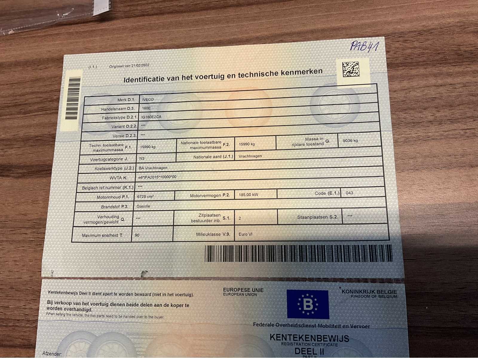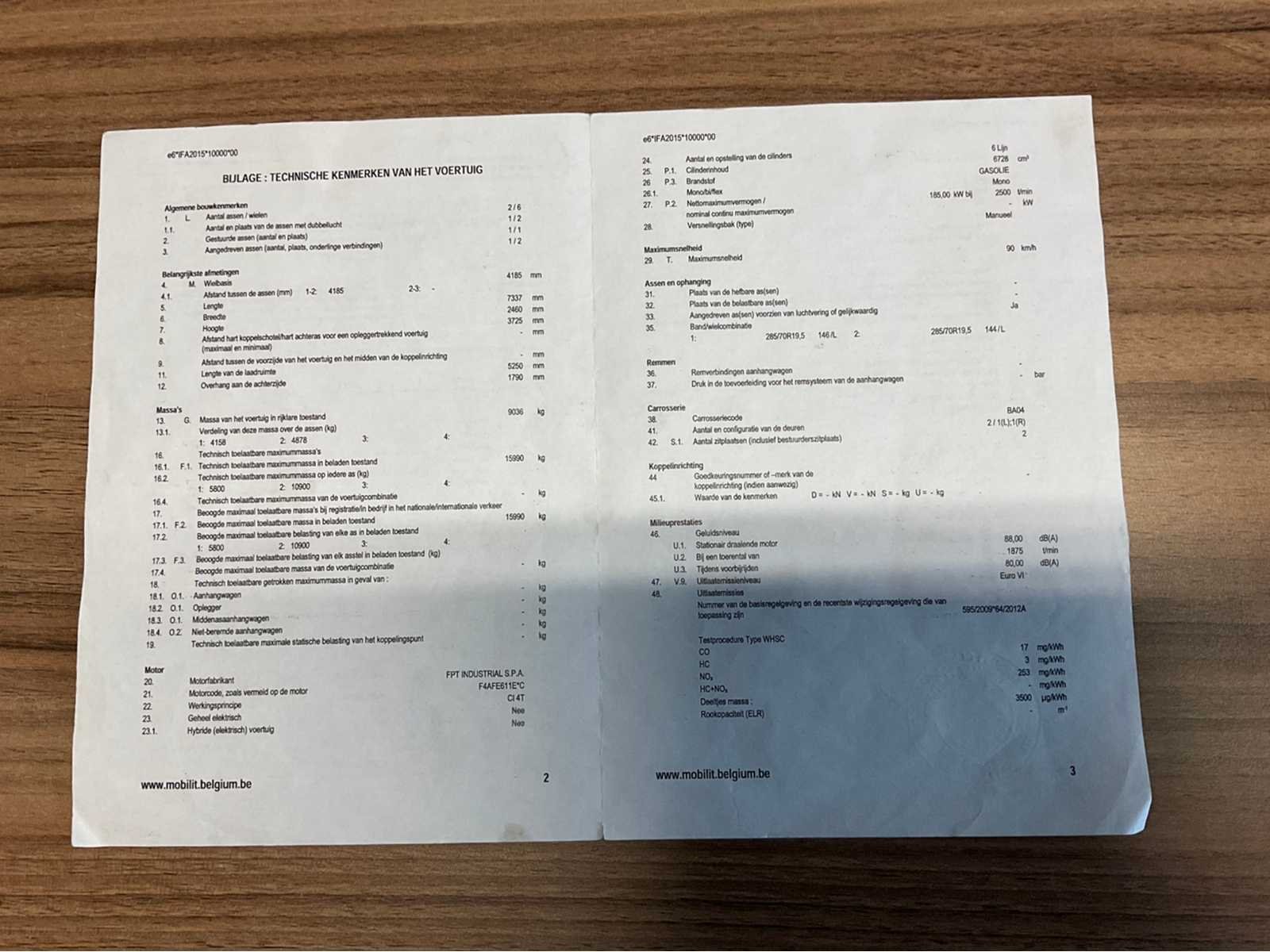 Vrachtwagen start en rijdt . Alle Documenten aanwezig Nee Merk: IVECO Type: IG160E2CA Bouwjaar: 2015 Chassisnummer VIN: ZCFA61MJX02632612 Cilinderinhoud: 6728cc Datum eerste toelating: 12/01/2015 Type transmissie: Automatisch Aantal assen: 2 Fuel Type: Diesel Emissieklasse: EURO VI Hydraulische laadklep: true Gesloten opbouw: true Eigen gewicht: 9036kg Totale afmeting L: 7337mm Totale afmeting Breedte: 2460mm Totale afmeting Hoogte: 3725mm Startinformatie: Start en rijdt Afgelezen kilometerstand: 289896km Nationaliteit documenten: België Kentekenpapieren compleet?: true Aantal zitplaatsen: 2 Automaat: true Diesel: true