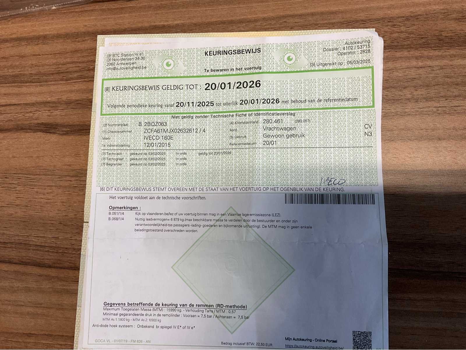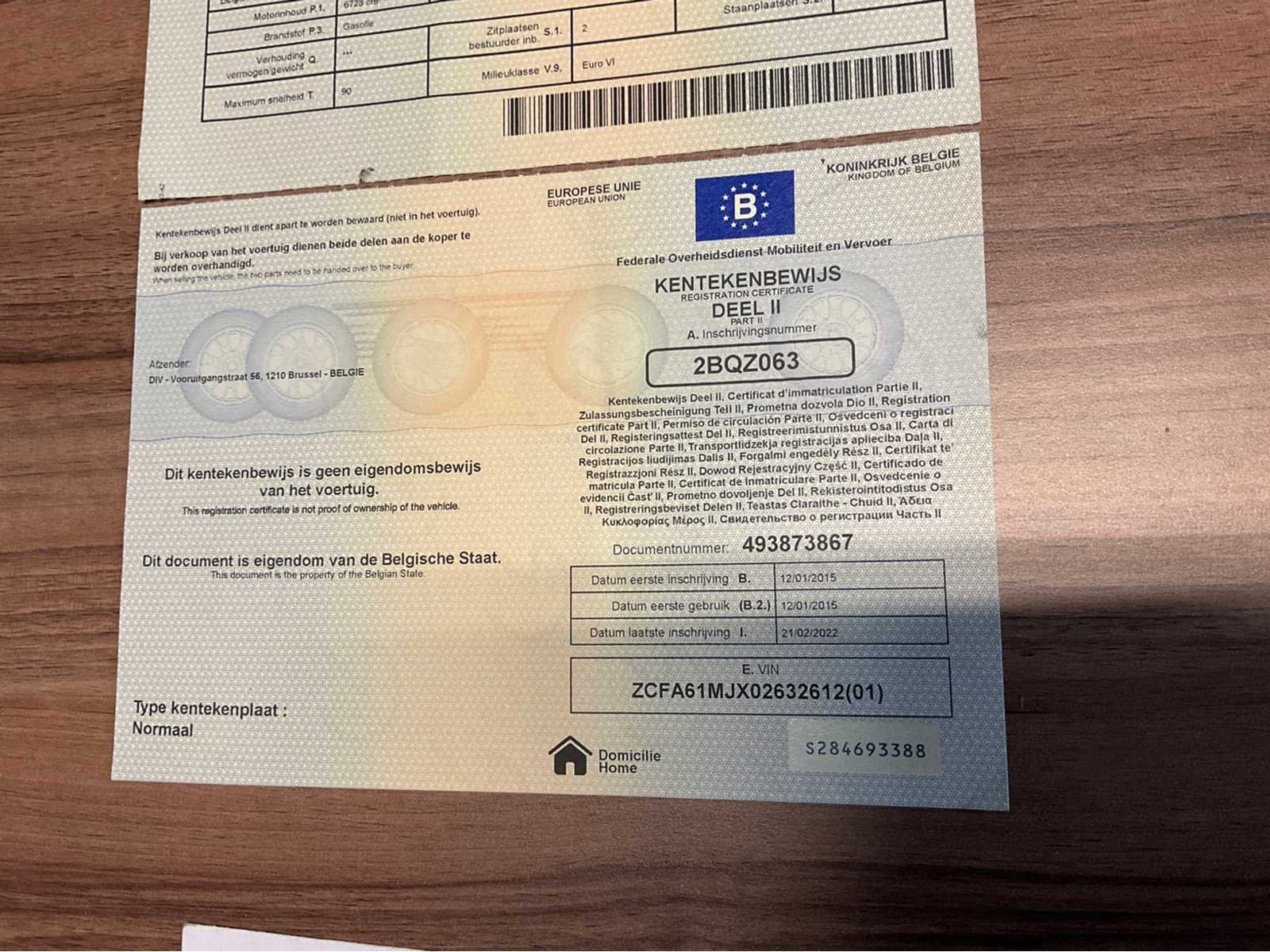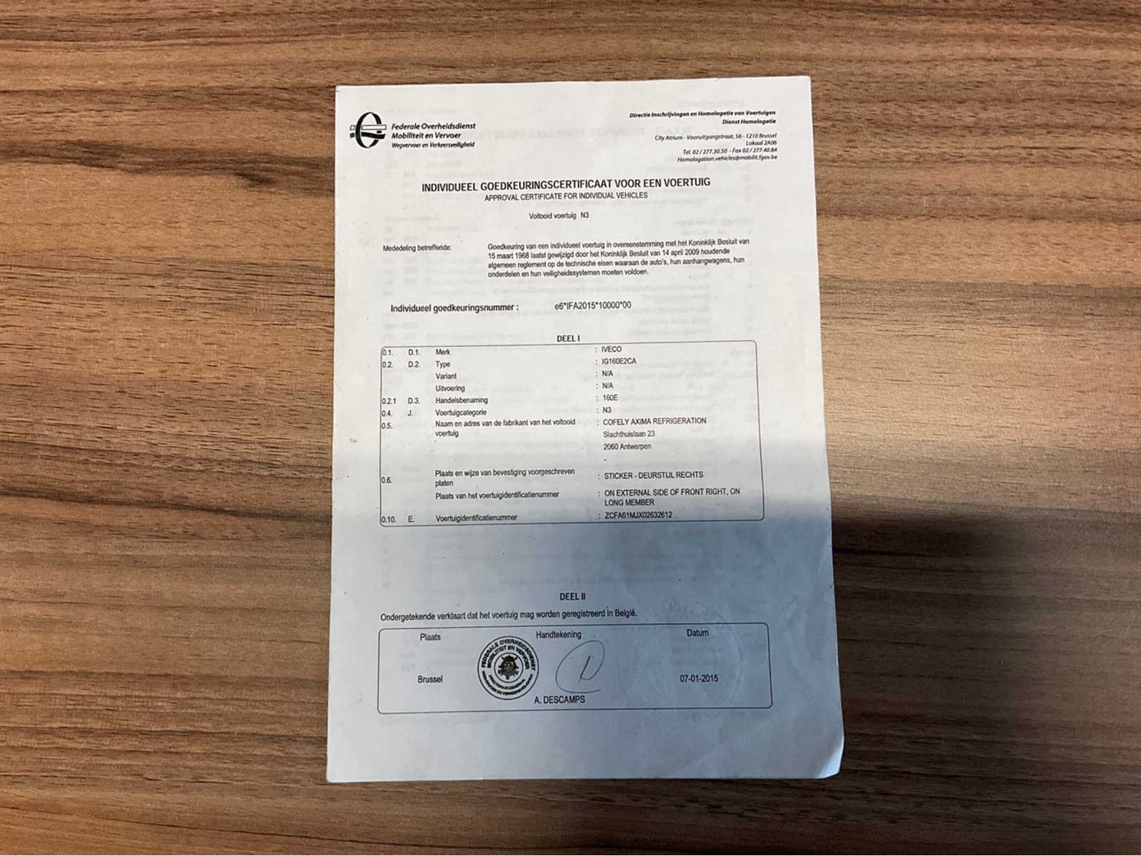 Vrachtwagen start en rijdt . Alle Documenten aanwezig Nee Merk: IVECO Type: IG160E2CA Bouwjaar: 2015 Chassisnummer VIN: ZCFA61MJX02632612 Cilinderinhoud: 6728cc Datum eerste toelating: 12/01/2015 Type transmissie: Automatisch Aantal assen: 2 Fuel Type: Diesel Emissieklasse: EURO VI Hydraulische laadklep: true Gesloten opbouw: true Eigen gewicht: 9036kg Totale afmeting L: 7337mm Totale afmeting Breedte: 2460mm Totale afmeting Hoogte: 3725mm Startinformatie: Start en rijdt Afgelezen kilometerstand: 289896km Nationaliteit documenten: België Kentekenpapieren compleet?: true Aantal zitplaatsen: 2 Automaat: true Diesel: true