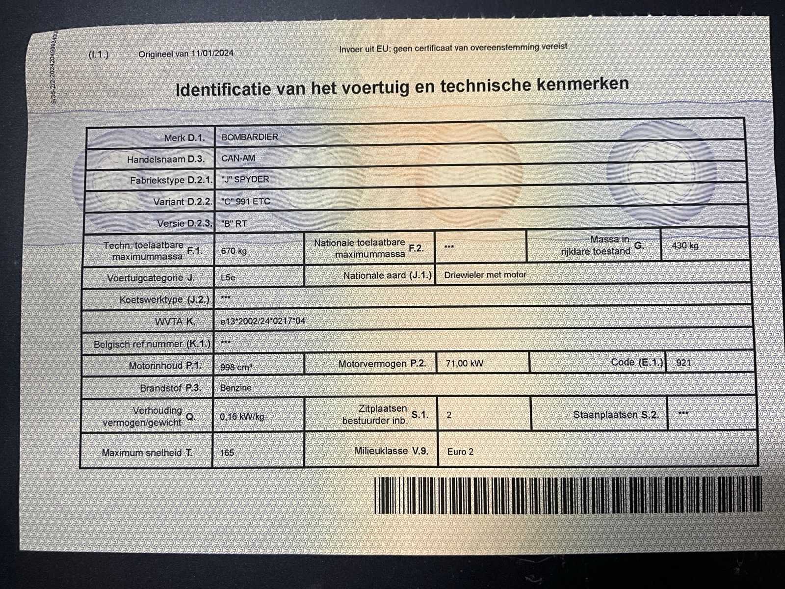 Zeer nette Can-Am Spyder RT Limited, in uitstekende staat en klaar voor vele comfortabele kilometers - Deze tourdriewieler van BRP (Bombardier Recreational Products) combineert het rijgevoel van een motor met de stabiliteit van drie wielen - Ideaal voor lange ritten, duo-reizen of wie op zoek is naar veilig, comfortabel én krachtig motorrijden - Deze Can-Am Spyder biedt uitzonderlijk comfort en stabiliteit, zelfs voor wie geen ervaring heeft met een klassieke motor - Dankzij de drie wielen, ABS en tractiecontrole voelt rijden altijd veilig en ontspannen aan - inclusief druppellader - kabel voor radio Nee Merk: Can-Am Model: Spyker RT Limited Datum eerste toelating: 22/9/2010 Transmissie: automaat Brandstof: benzine Kleur: grijs Bouwjaar: 2010 Afgelezen kilometerstand: 57458km Chassisnummer: 2BXJBLC19AV001036