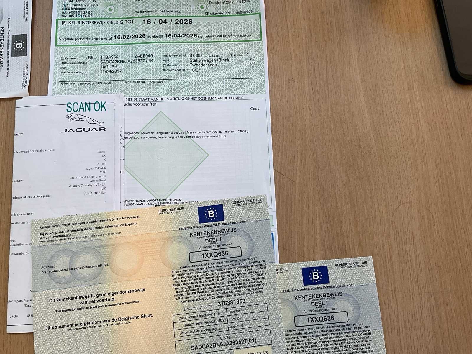 Sportzetels Alcantara bekleed Digitaal dashboard Elektrische koffer Elektrische trekhaak Nee Merk: Jaguar Model: F-Pace Type: R Sport Bouwjaar: 2017 Afgelezen kilometerstand: 95697km Cilinderinhoud: 1999cc Vermogen (kW): 177kW Brandstof: Diesel Chassisnummer: SADCA2BN6JA263527 Laadvermogen: 2470kg Datum eerste toelating: 11/09/2017 Aantal zitplaatsen: 5 Kleur: London Green Transmissie: Automaat Aantal deuren: 5 Aantal sleutels: 1 Ledig gewicht: 1918kg Nationaliteit documenten: BE Start en rijdt: Ja Keuringsrapport geldig tot: 16/04/2024 Airconditioning: true Navigatie: true LED-koplampen: true Luchtvering: true Vierwielaandrijving 4x4: true Inschrijvingsbewijs - deel 1 : Aanwezig Inschrijvingsbewijs - deel 2: Aanwezig