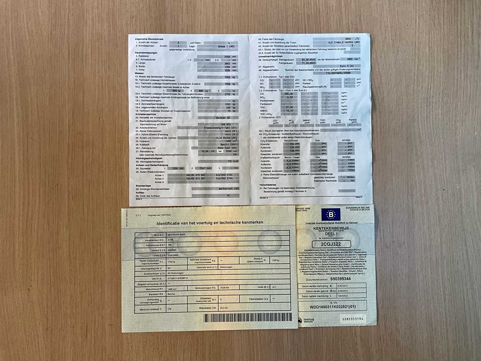 No Merk: Mercedes-Benz Model: A 160 Bouwjaar: 2012 Afgelezen kilometerstand: 87802km Cilinderinhoud: 1498cc Vermogen (kW): 70kW Brandstof: Benzine Chassisnummer: WDD1690311K032921 Datum eerste toelating: 01/02/2012 Aantal zitplaatsen: 5 Transmissie: Handgeschakeld Aantal deuren: 5 Ledig gewicht: 1245kg Nationaliteit documenten: BE Gelijkvormigheidsattest aanwezig: true Start en rijdt: JA Inschrijvingsbewijs - deel 1 : Aanwezig Inschrijvingsbewijs - deel 2: Aanwezig