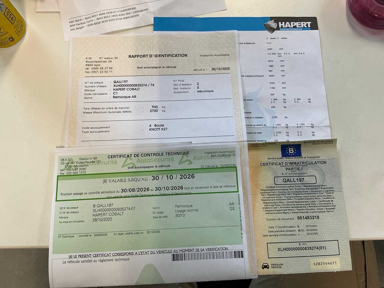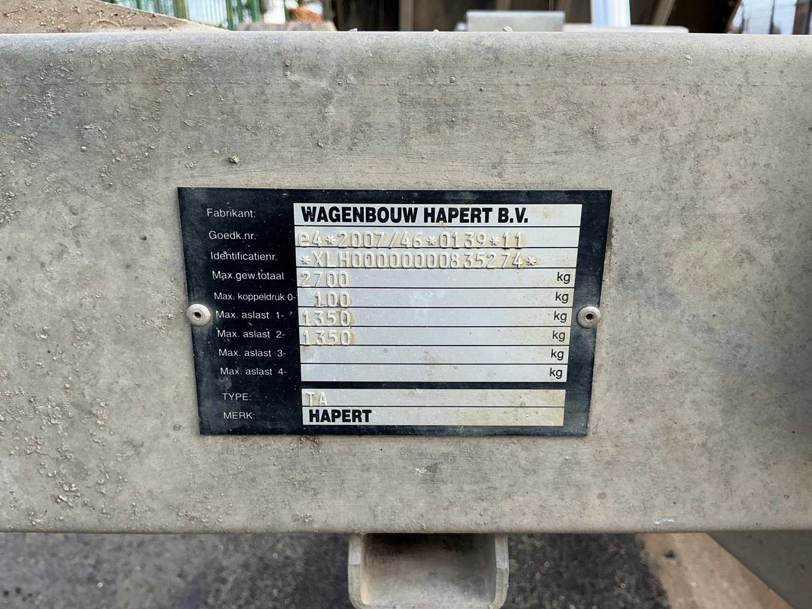 Blanco gekeurd tem 30/10/2026 Nee Merk: Hapert Type: TA Model: COBALT Bouwjaar: 2020 Chassisnummer: XLH00000000835274 Aantal assen: 2 Laadbak afmeting l: 330cm Laadbak afmeting b: 180cm Datum eerste toelating: 28/10/2020 Nationaliteit documenten: Belgisch
