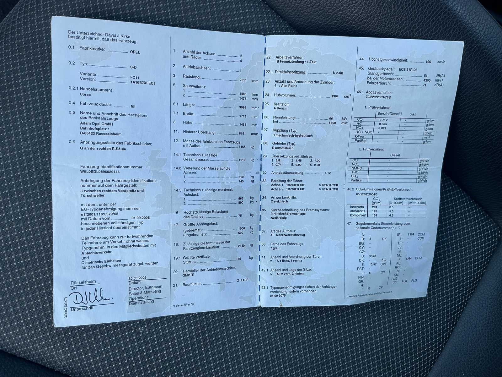 Snelheidsmeter werkt niet meer <gr> digitale snelheidsmeter geïnstalleerd No Kenteken: 2FEV436 Merk: Opel Model: Corsa Bouwjaar: 2009 Afgelezen kilometerstand: 184587km Cilinderinhoud: 1364cc Vermogen (kW): 66kW Brandstof: Benzine Afgelezen mijlenstand: 184587mi Chassisnummer: WOLOSDL0896020446 Datum eerste toelating: 07/05/2009 Aantal zitplaatsen: 5 Transmissie: Automaat Emissieklasse: Euro 4 Nationaliteit documenten: Belgische Start en rijdt: Ja Keuringsrapport geldig tot: 13/03/2026 Vavato voert geen technische keuring uit.: true Inschrijvingsbewijs - deel 1 : Aanwezig Inschrijvingsbewijs - deel 2: Aanwezig