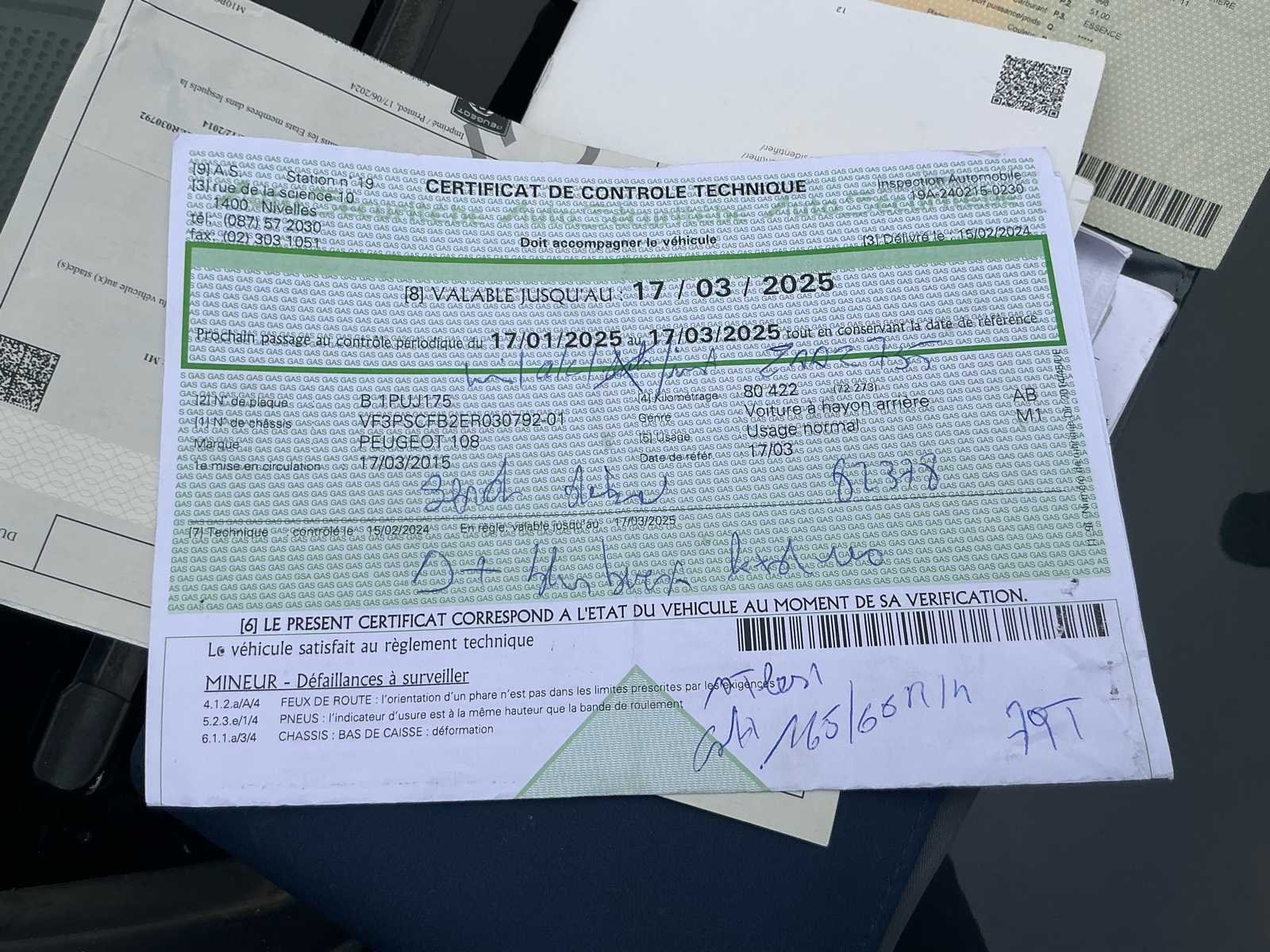 No Kenteken: 1PUJ175 Merk: Peugeot Model: 108 Bouwjaar: 2015 Afgelezen kilometerstand: 82399km Cilinderinhoud: 998cc Vermogen (kW): 51kW Brandstof: Benzine Chassisnummer: VF3PSCFB2ER03792 Datum eerste toelating: 17/03/2015 Aantal zitplaatsen: 4 Transmissie: Handgeschakeld Emissieklasse: Euro 5b Start en rijdt: Ja Keuringsrapport geldig tot: 17/03/2025 Vavato voert geen technische keuring uit.: true Inschrijvingsbewijs - deel 1 : Aanwezig Inschrijvingsbewijs - deel 2: Aanwezig