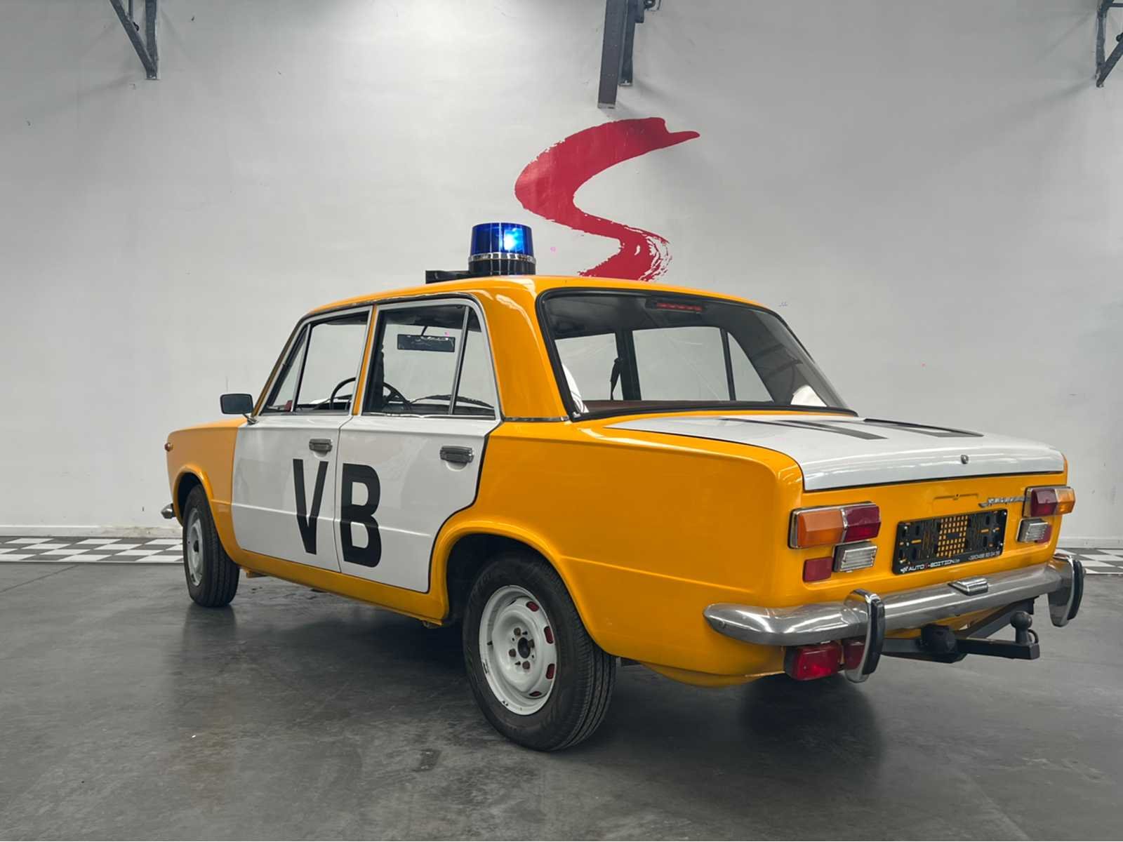 Lada VAZ 2102 in de configuratie van een dienstvoertuig / verkeerspolitie (VB – Verkeersbrigade). Het voertuig wordt gepresenteerd in een geel-witte kleurstelling met VB-markeringen en blauwe knipperende lichten op het dak. Hij is uitgerust met een vintage TESLA-bedieningskast voor licht- en geluidssignalering. Het interieur is van bruine lederen bekleding en verkeert in goede algemene staat. Het dashboard, het stuur en de bediening zijn origineel. Het voertuig heeft ook een achterste koppeling. Voertuig bedoeld voor verzameling, tentoonstelling of evenement. Kilometer: 22,477 km Brandstof: Benzine Cilinderinhoud: 1,198 cm³ Vermogen: 44 kW / 60 pk Versnellingsbak: Handgeschakeld Transmissie: achterwielaandrijving Non Merk: Lada Model: VAZ 2102 Bouwjaar: 1986 Afgelezen kilometerstand: 22480km Cilinderinhoud: 1198cc Vermogen (kW): 44kW Brandstof: benzine Chassisnummer: 0515984 Vermogen (pk): 60hp Aandrijving: Links Aantal zitplaatsen: 4 Kleur: Geel Transmissie: Handgeschakeld Aantal deuren: 4 Aantal sleutels: 1 Nationaliteit documenten: Slowaaks Vavato voert geen technische keuring uit.: waar