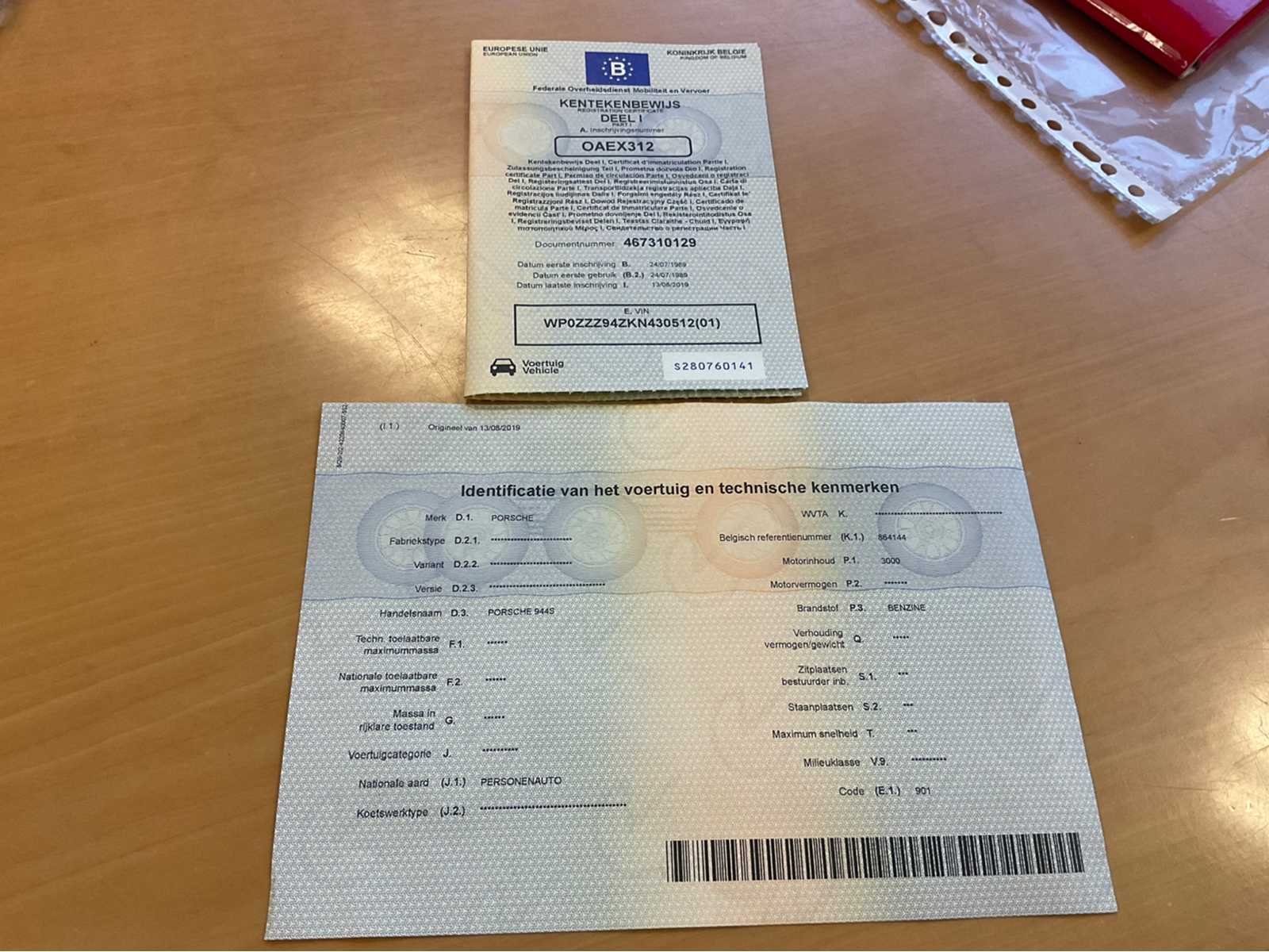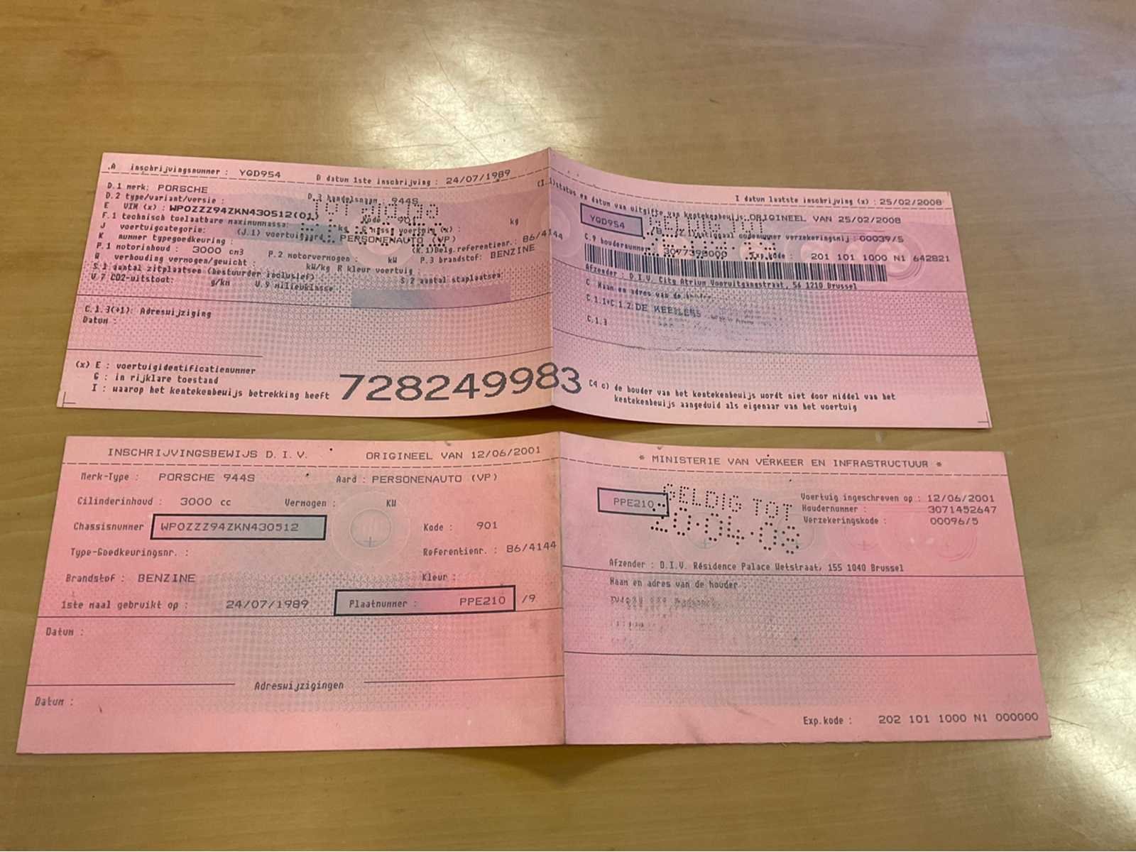 Porsche 944 S Cabriolet uitgerust met de 3,0-liter benzinemotor en een handgeschakelde versnellingsbak. Dit voertuig, voor het eerst geregistreerd op 24-07-1989, is verkrijgbaar in een aantrekkelijke configuratie met zwarte carrosserie, een origineel zwart interieur en een zwarte softtop. De Porsche 944 S wordt gewaardeerd om zijn balans, mechanische betrouwbaarheid en hoogpresterende atmosferische motor. De Cabriolet-versie voegt een echte aantrekkingskracht toe voor ontspanning of verzamelaarsgebruik. Technische gegevens Merk: Porsche Model: 944 S Type: Cabriolet Jaar: 1989 Eerste indienstname: 24/07/1989 Brandstof: Benzine Hubruimte: 3,0 L (3000 cc) Transmissie: Handgeschakelde transmissie Kilometerstand: 188,748 km (afhankelijk van de kilometerteller) Chassisnummer (VIN): WP0ZZZ94ZKN430512 Algemene staat Carrosserie: Goede visuele conditie, glanzende zwarte lak met normale gebruikstekenen die gerelateerd zijn aan de leeftijd van het voertuig Interieur: Originele Porsche leder- en stoffen interieur, in goede algehele staat met slijtage die past bij de kilometerstand Dashboard: In goede staat, zonder zichtbare scheuren Velgen: Lichtmetalen velgen gemonteerd, goede presentatie Softtop: Zwart softtop, visuele conditie correct. Aanvullende informatie Voertuig vergezeld van Belgische registratiedocumenten (oud en nieuw) Ongerestaureerd voertuig, gepresenteerd in zijn huidige staat Non Merk: Porsche Model: 944 S Bouwjaar: 1989 Afgelezen kilometerstand: 189000km Cilinderinhoud: 3000cc Vermogen (kW): 155kW Brandstof: benzine Chassisnummer: WP0ZZZ94ZKN430512 Datum eerste toelating: 1989 Vermogen (pk): 211hp Aandrijving: Links Aantal zitplaatsen: 4 Kleur: Zwart Transmissie: Handgeschakeld Aantal deuren: 2 Aantal sleutels: 1 Nationaliteit documenten: Belg