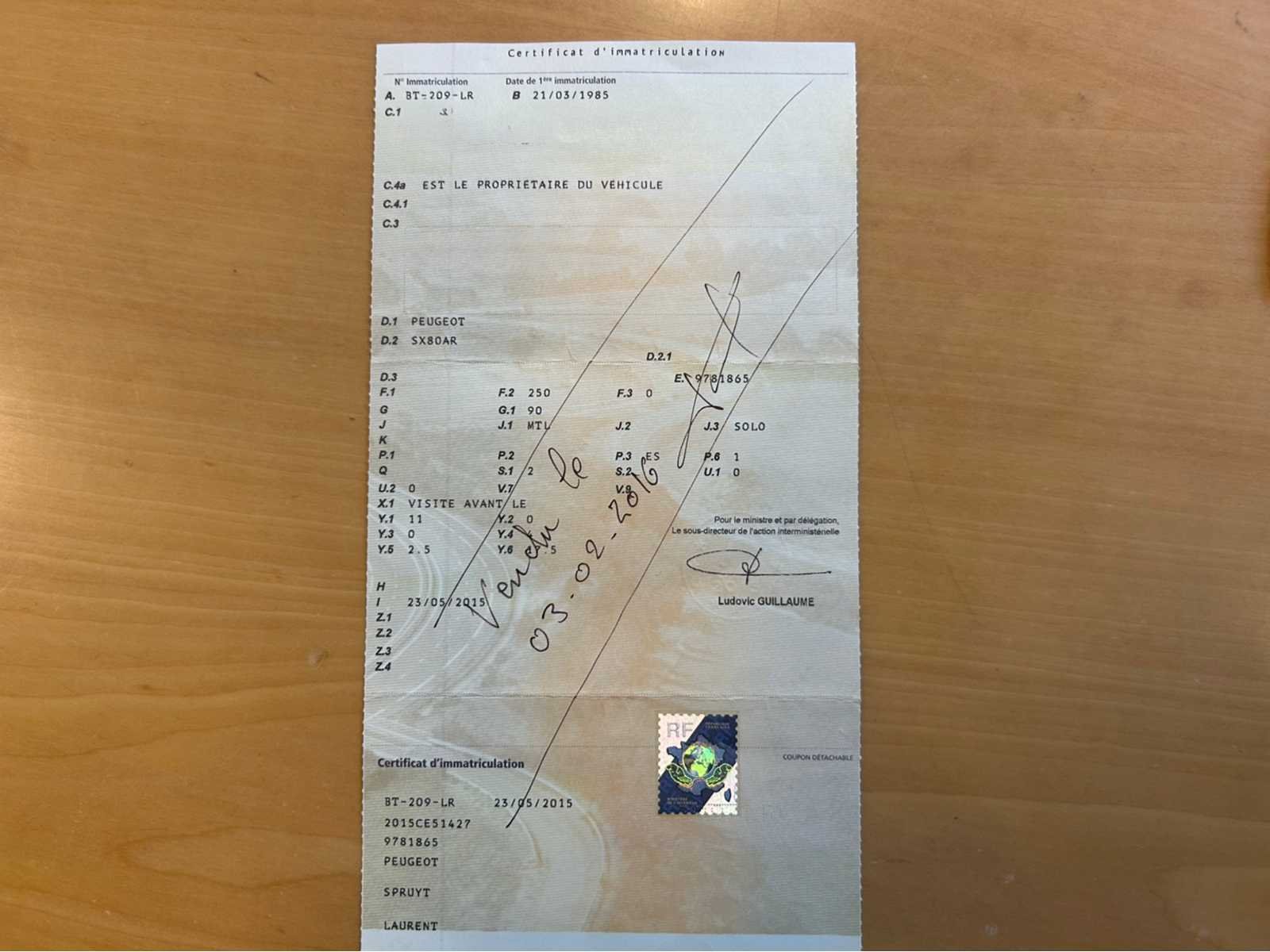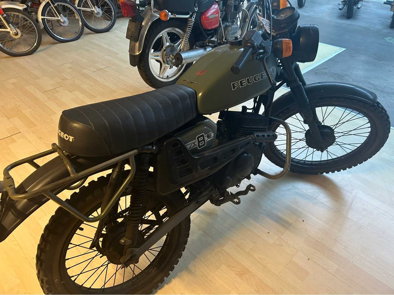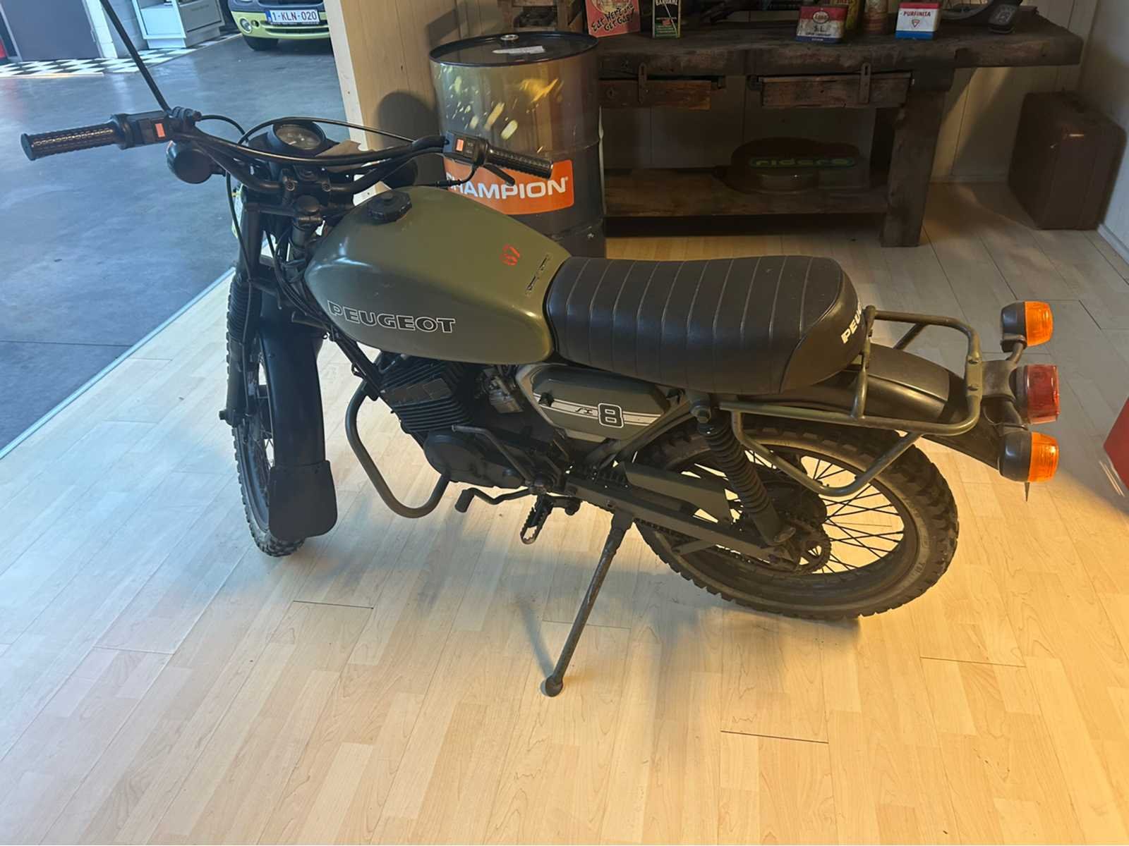 Lichte motorfiets Peugeot S80AR, ook bekend als Peugeot P80, in administratieve/commerciële versie. Voor het eerst geregistreerd op 21-03-1985. Motorfiets in standaardconfiguratie. Uitgerust met een 80 cc tweetakt eencilinder motor, luchtgekoeld, carburateurvoeding en kickstart. Kettingtransmissie, handgeschakelde versnellingsbak. Originele Veglia-instrumentatie, met ongeveer 19.100 km. De motor heeft een configuratie die typisch is voor administratieve versies: legergroene lak, motorbeschermers, bakplaat, achterdrager en gespijkerde banden. Franse kentekenkaart aanwezig. Voertuig bedoeld voor verzameling, tentoonstelling of herstart van gebruik volgens het project van de koper. 📋 Technische gegevens (Troostwijk-blok) Merk: Peugeot Type / Model: S80AR (P80) Brandstof: Benzine (2-taktmotor) Verplaatsing: 80 cm³ Vermogen: ca. 4 kW Datum van eerste inschrijving: 21/03/1985 Chassisnummer: 9781865 Kilometerstand: ca. 19.100 km Transmissie: Ketting Start: Kick Non Model: Peugeot Type: SX80 AR Brandstof: Essentie Chassisnummer: 9781865 Cilinderinhoud: 80cc Datum eerste toelating: 1985 Kleur: Army Green Afgelezen kilometerstand: 19100km Nationaliteit documenten: Frans