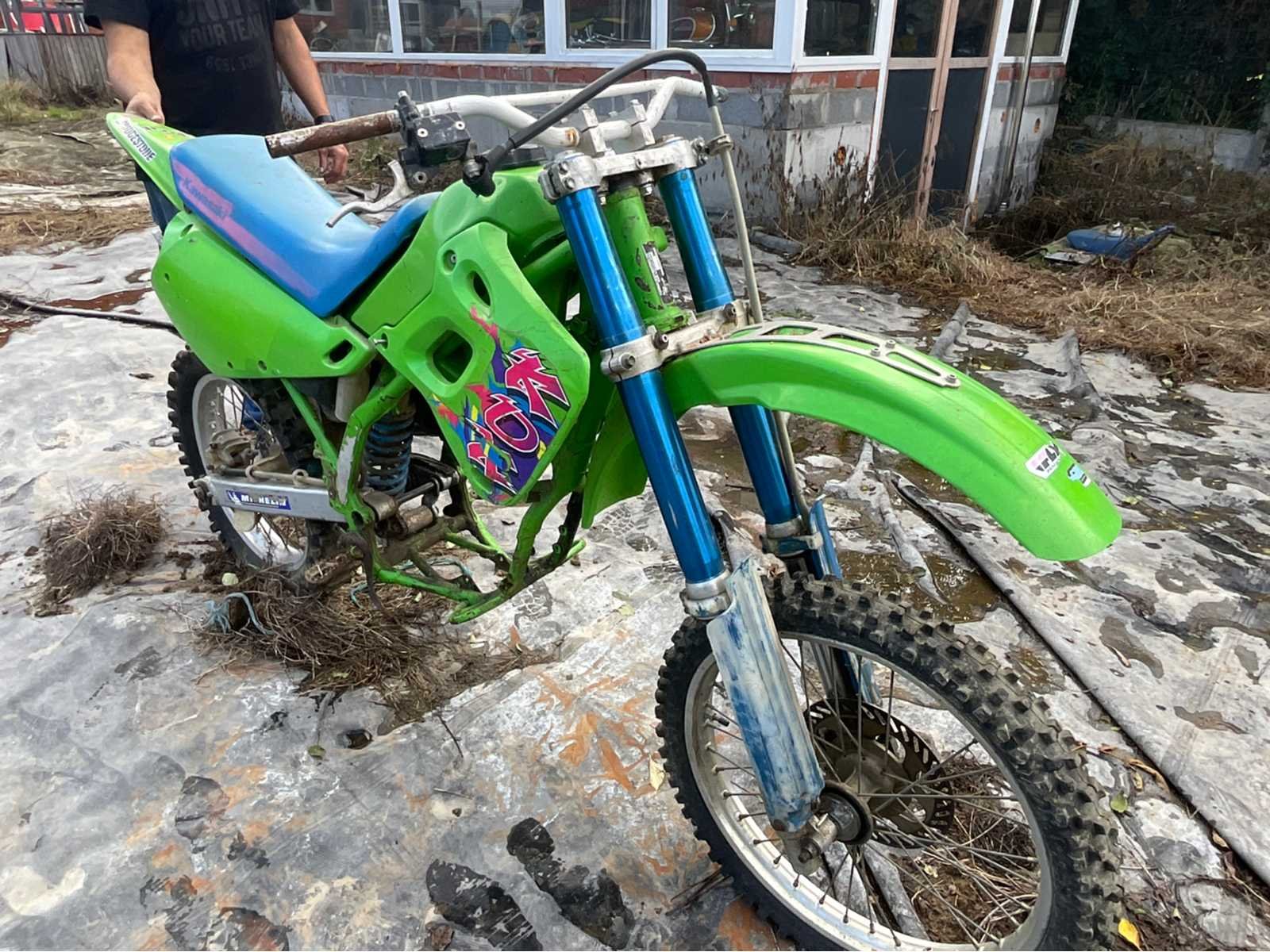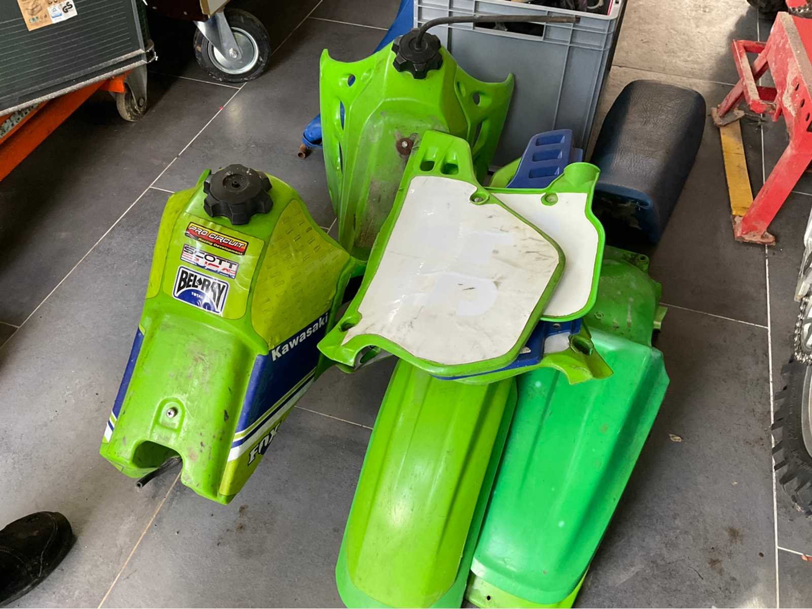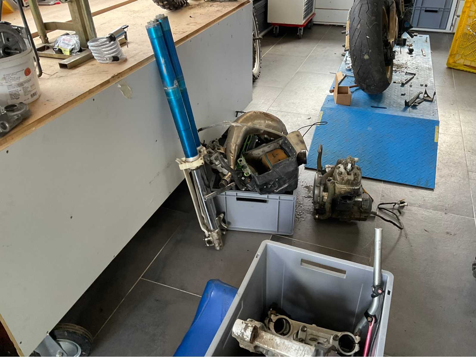 Set van 3 Kawasaki KX 250 inclusief een KDX 2 motoren (1 draaiend, 1 om opnieuw in elkaar te zetten) 2 zandgestraalde en poedervormige frames Diverse onderdelen Bijna af, maar nog te worden weer in elkaar gezet Non Merk: Kawasaki Model: KX Type: 250 Brandstof: Benzine Chassisnummer niet afleesbaar: waar