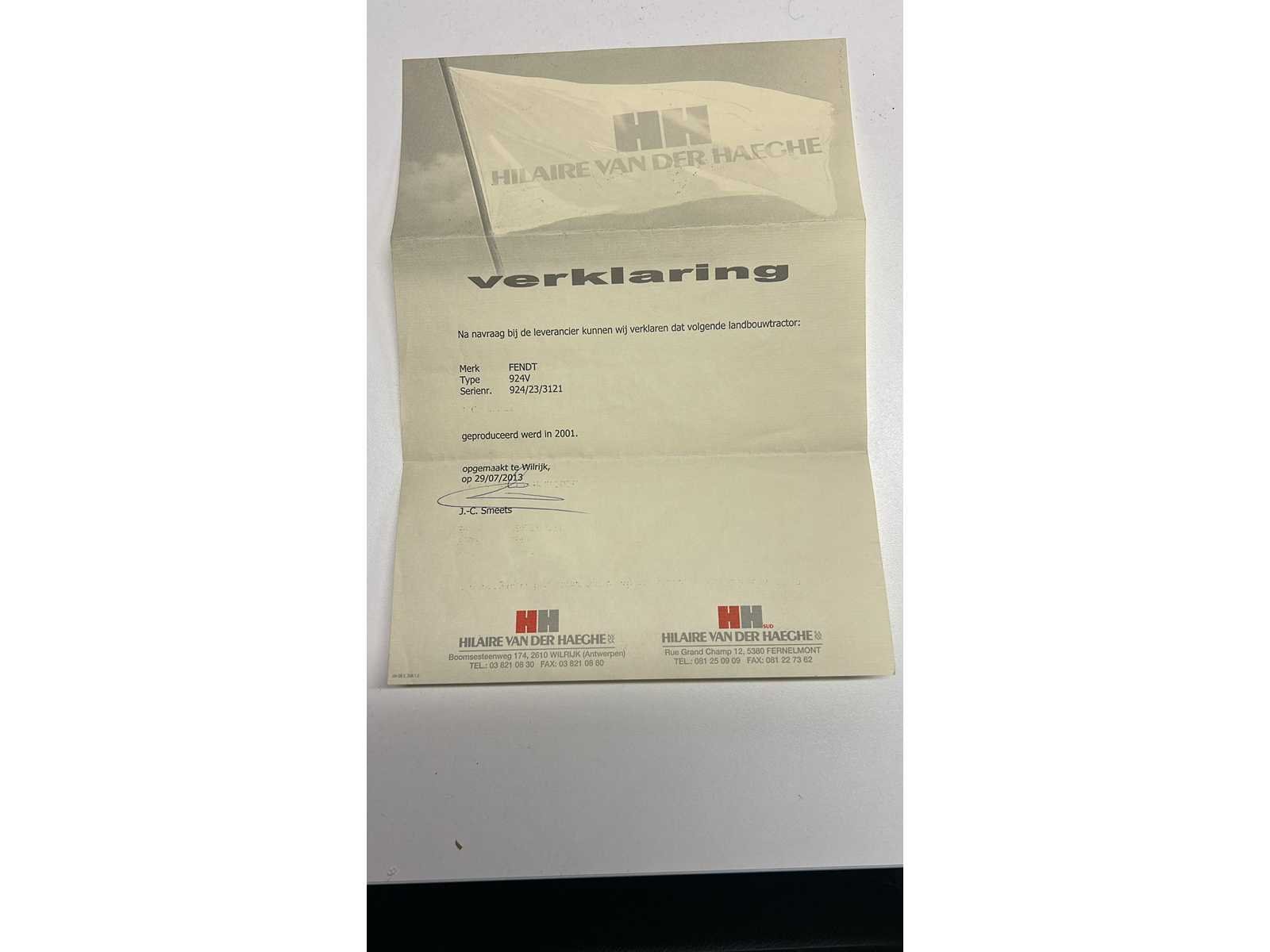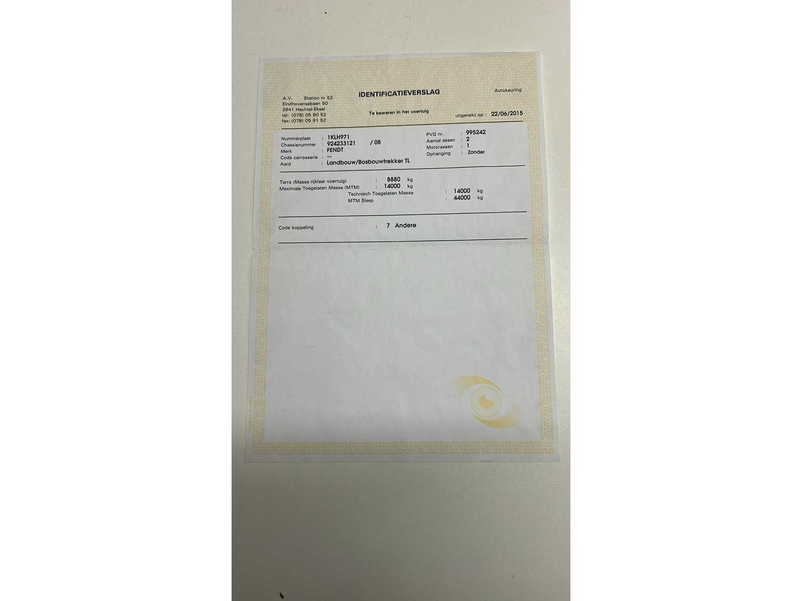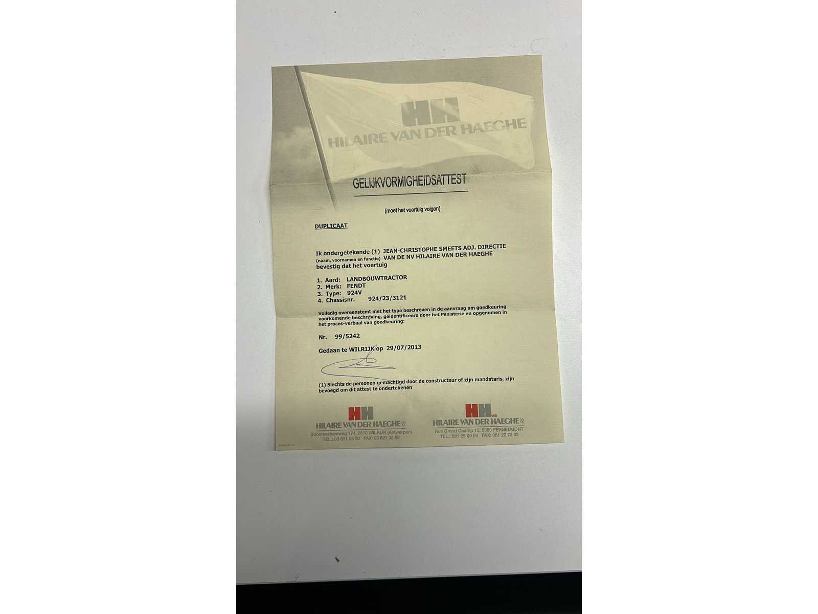 Aanwezige documenten: kentekenbewijs deel 1, gelijkvormigheidsattest, identificatieverslag. Nee Merk: Fendt Type: 924 Bouwjaar: 2001 Motorvermogen (kW): 188kW Afgelezen urenstand: 20414.9 Bandenmaat voor: 520/70 R 34 Bandenmaat achter: 650/75 R 42 Eigen gewicht: 8880kg Kentekenpapieren compleet?: true Chassisnummer: 924233121 Datum eerste toelating: 15/9/2001 Nationaliteit documenten: België
