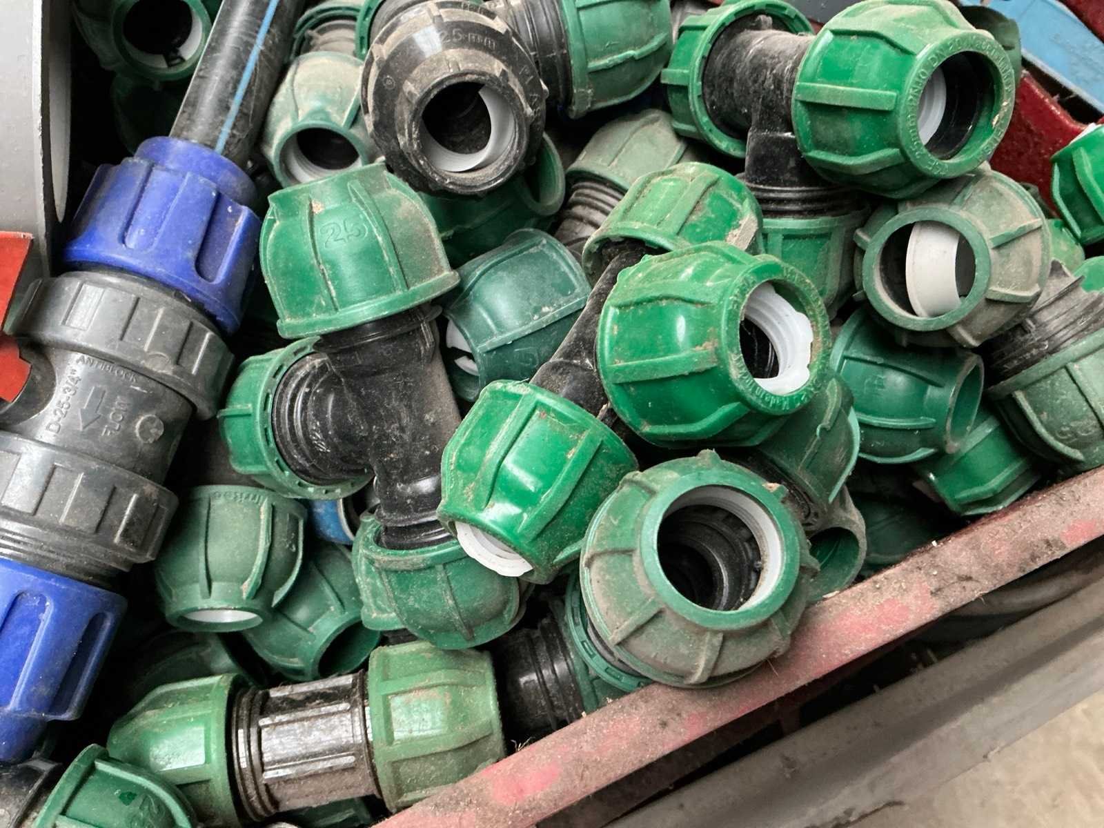 Diverse pvc bochten en koppelstukken + klemkoppelingen