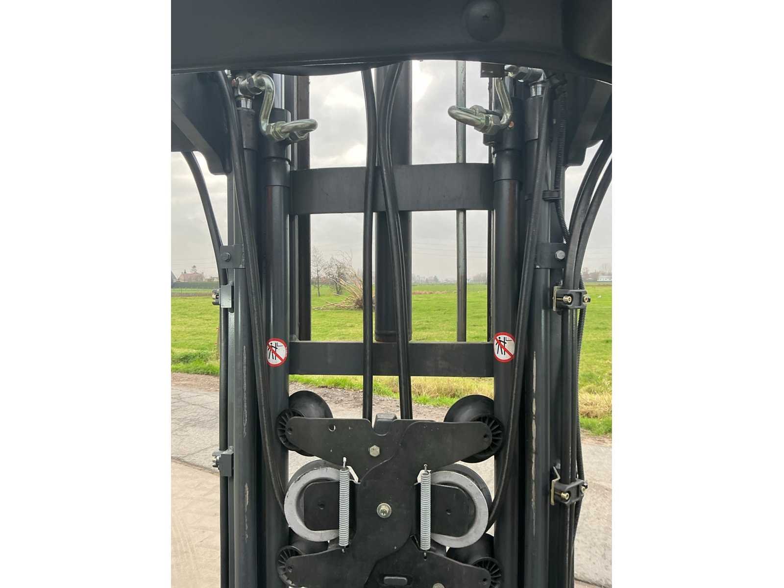 Nieuwe 180 ° rotator met arm . Led werklichten , blue spot en flash light , 4de valve met snelkoppeling en drukloos zet schakelaar Nee Merk: Linde Type: E20PL-02 Bouwjaar: 2017 Serienummer: H2X386H10519 Brandstof: Elektrisch Mast: Triple Soort band: Volrubber banden Aantal wielen: 4 Side-shift: true Roterend vorkenbord: true Triple mast: true Eigen gewicht: 3700kg Hefvermogen: 2000kg Lepellengte: 1200mm Min. hefhoogte: 0mm Max. hefhoogte: 4620mm Vol rubber banden: true Totale afmeting L: 2300mm Totale afmeting Breedte: 1100mm Totale afmeting Hoogte: 2100mm