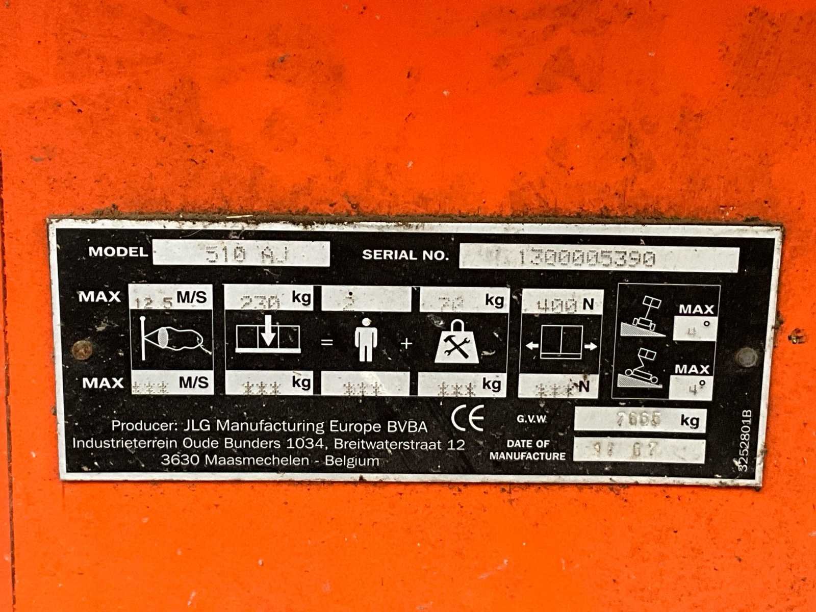 JLG 510 AJ hoogtewerker van het bouwjaar 2007. De machine is in werkende staat. Zie foto’s voor verdere details. No Merk: JLG Type: 510 AJ Bouwjaar: 2007 Serienummer: 130005390 Diesel: true Werkhoogte: 17810mm Platform capaciteit: 230kg Afgelezen urenstand: 1280 Eigen gewicht: 7665kg