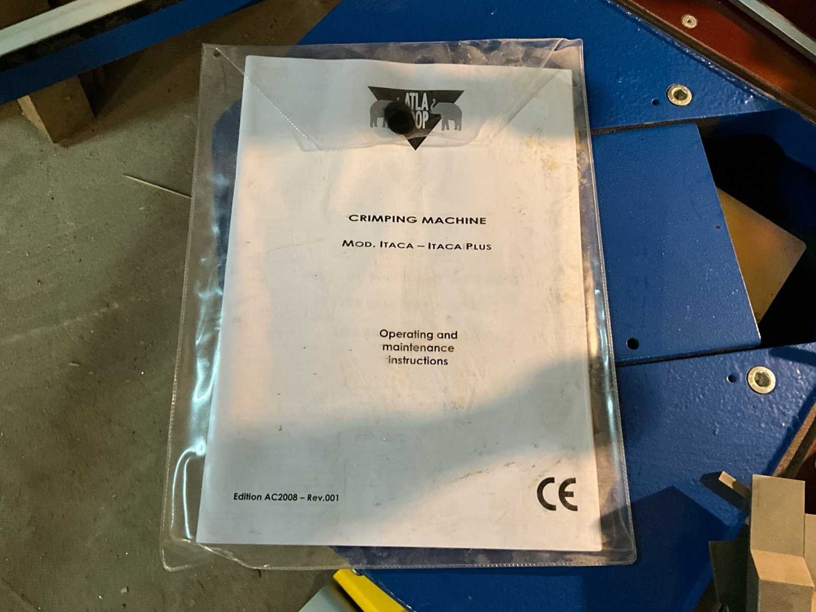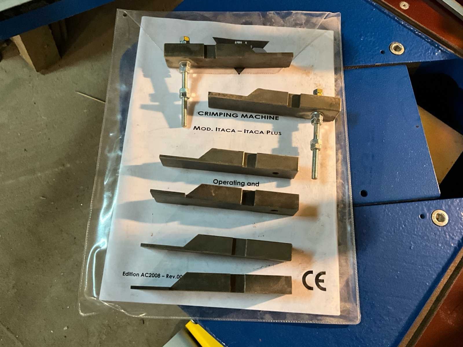 Machine in zeer nette en werkende staat. De machine werd amper gebruikt. Zie foto’s voor verdere details. 7 bar pressure. Inclusief de beitels, te zien op de foto’s. No Merk: Itaca Type: Crimping Machine Bouwjaar: 2023 Serienummer: AT8152023 Aansluiting: 230V Machinegewicht: 450kg