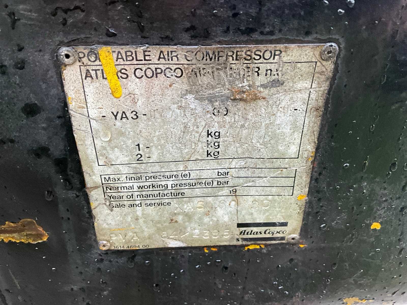 Weinig gebruikt en goed onderhouden. In goed werkende staat. Nee Merk: Atlas copco Type: XAS 60