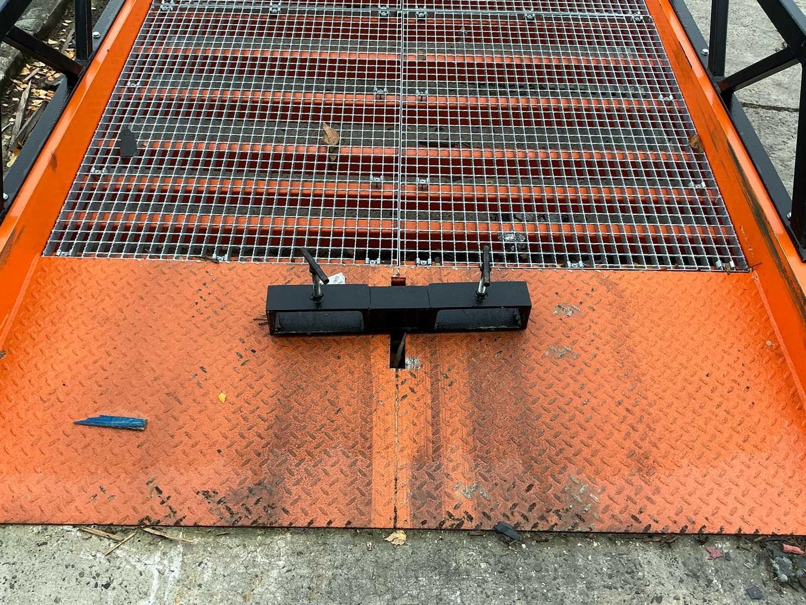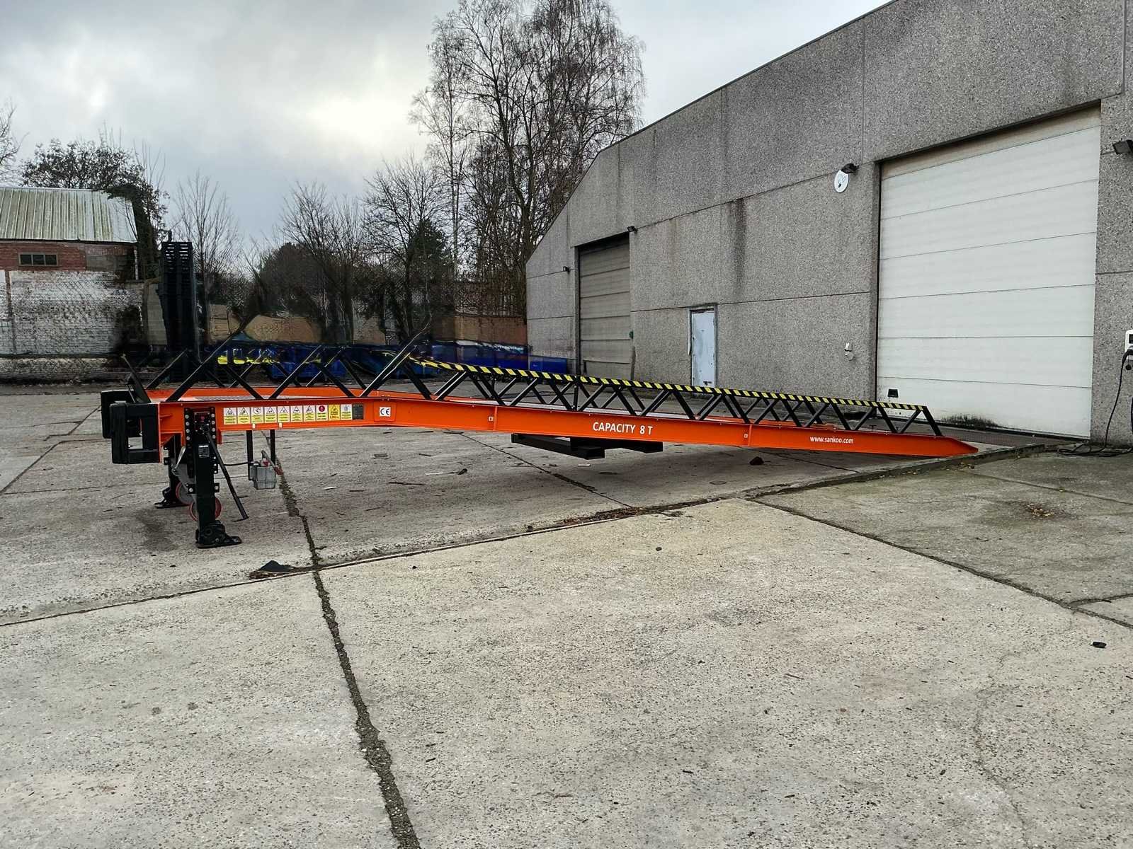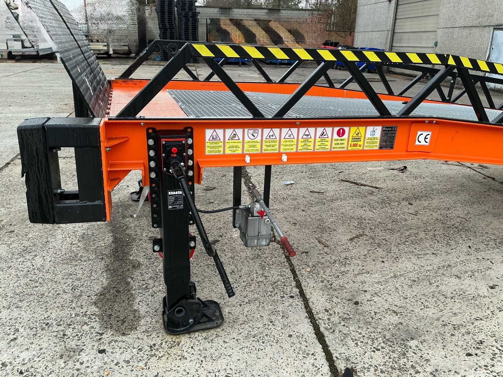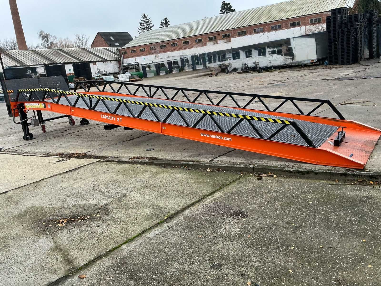 Nieuwstaat. Ook geschikt voor transpaletten. Load Capacity: ~12 000 kg (12 ton) — suitable for forklifts and similar equipment.  📏 Dimensions (approx): • Length: ~11 000–11 500 mm (≈ 11–11.5 m)  • Width: ~2 000 mm (internal working width)  ⚙️ Load Height Range: Typically suitable for loading heights roughly 1 000–1 600 mm, adjustable with built-in hydraulics.  🛞 Mobility: Heavy-duty wheels or casters allow repositioning with a forklift.  🛠️ Construction: CE certified, steel frame with anti-slip deck and side safety barriers. No Merk: Saurus Eigen gewicht: 3000kg Totale afmeting L: 11000mm Totale afmeting Breedte: 2000mm Totale afmeting Hoogte: 1600mm