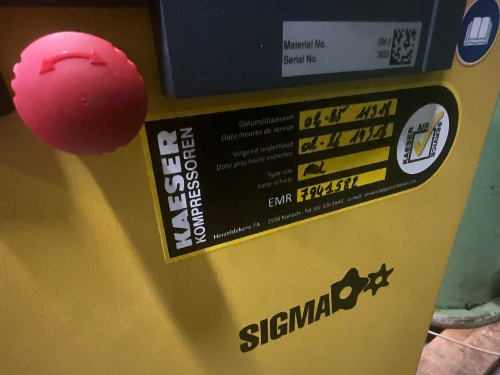 🔧 MODEL: KAESER SM 10 – UITLEG & TECHNISCHE INFO ⭐ Wat is dit? Een oliegeïnjecteerde schroefcompressor met SIGMA-profiel, gebouwd voor continu gebruik en zeer energiezuinig. Kaeser is één van de beste merken in de compressorenwereld. 📌 Belangrijkste specificaties (afgelezen van uw foto's): ✔ Model: SM 10 ✔ Merk: Kaeser Kompressoren (Duitsland) ✔ Type: Schroefcompressor ✔ Motorvermogen: Afhankelijk van uitvoering – meestal 7,5 kW (10 pk) — Daarom heet hij ook SM 10. ✔ Werkdruk: Meestal 7,5 bar, 10 bar of 13 bar – af te lezen: – Op uw typeplaat lijkt Pmax 11 bar te staan. ✔ Luchtopbrengst (debiet): Afhankelijk van druk: 7,5 bar → ± 1.0 – 1.2 m³/min 10 bar → ± 0.9 m³/min 13 bar → ± 0.8 m³/min ✔ Stroomvoorziening: 400V – 3-fase IE3 energiezuinige motor ✔ Serienummer: zichtbaar op het label (3625). ✔ Materiaalnummer: SM 10 🛠️ Onderhoudssticker (gele sticker op foto): Daar staat op: Uurstand laatste onderhoud: 02-05 → 4521 uren Volgende onderhoud: 01-18 → 4725 uren (dus al gepasseerd) Type olie: KDL EMR nummer: 7941588 ‼️ → Deze compressor heeft onderhoud nodig als dit niet gebeurd is sinds die sticker. 🖥️ SIGMA CONTROL BASIC paneel Dit is het bedienings- en bewakingssysteem van Kaeser: Toont bedrijfsuren Druk Storingen Onderhoudstimers Nee Merk: Kaizer
