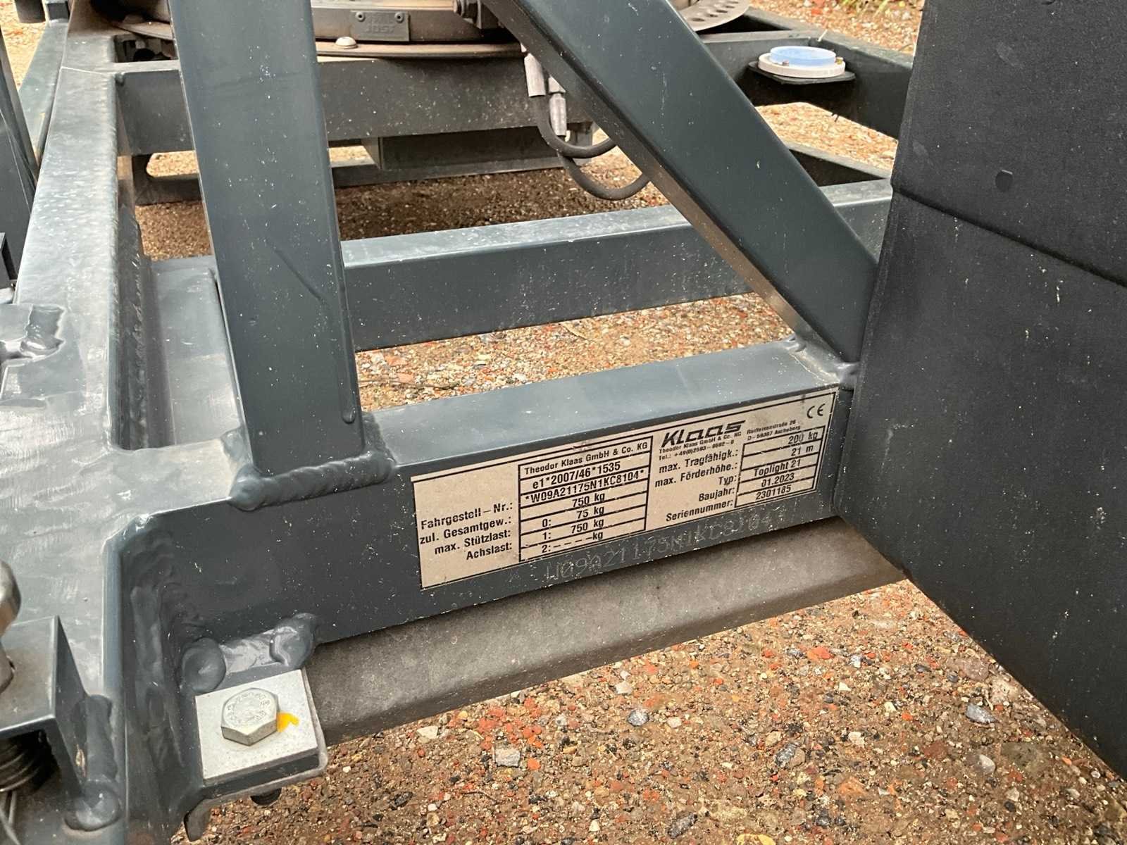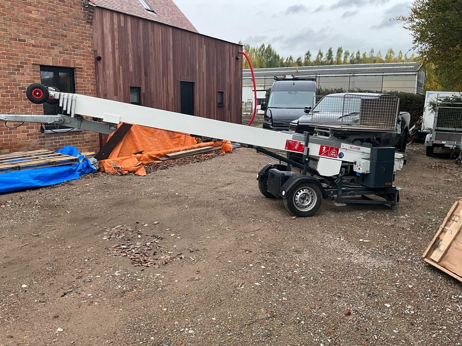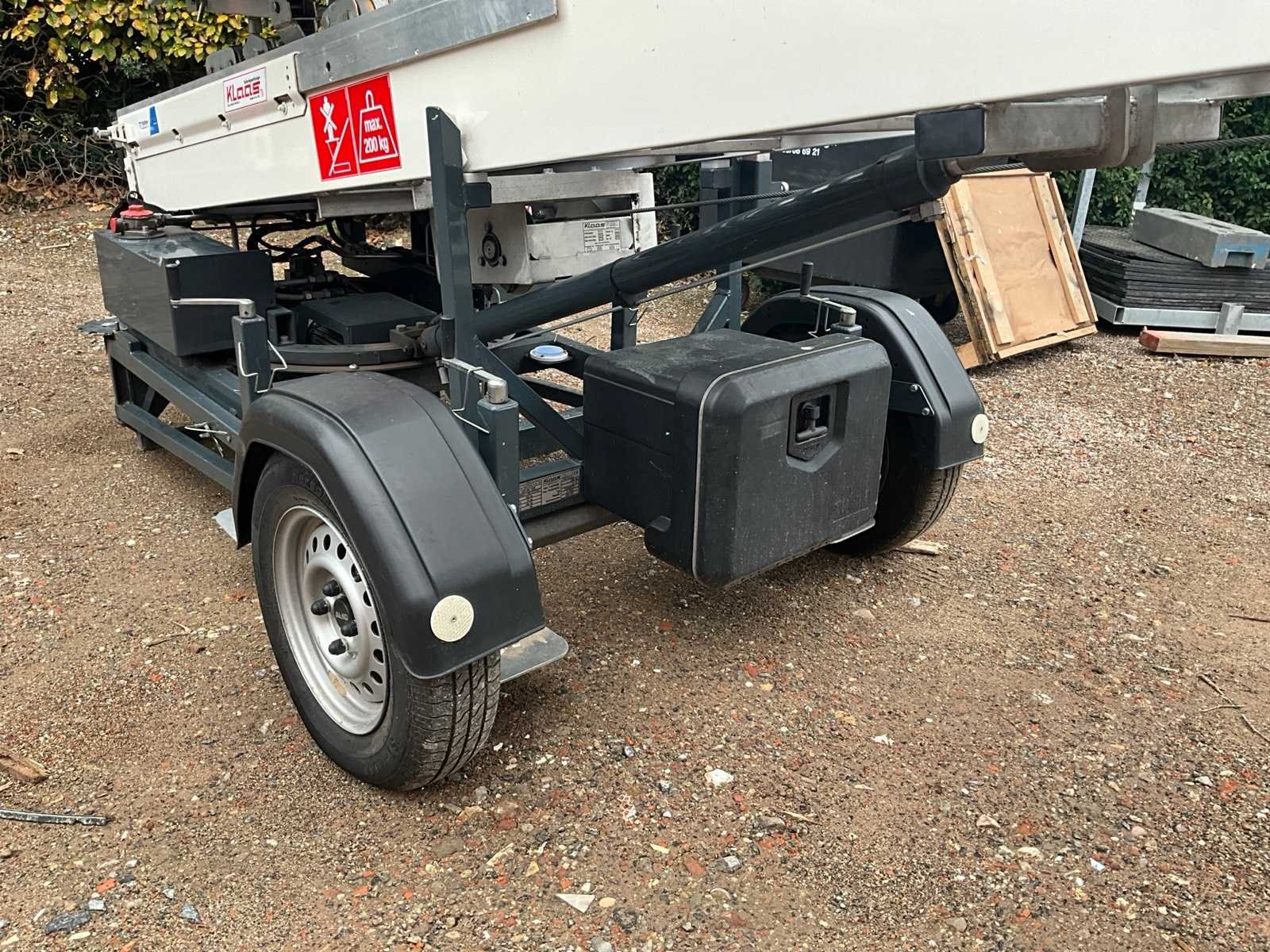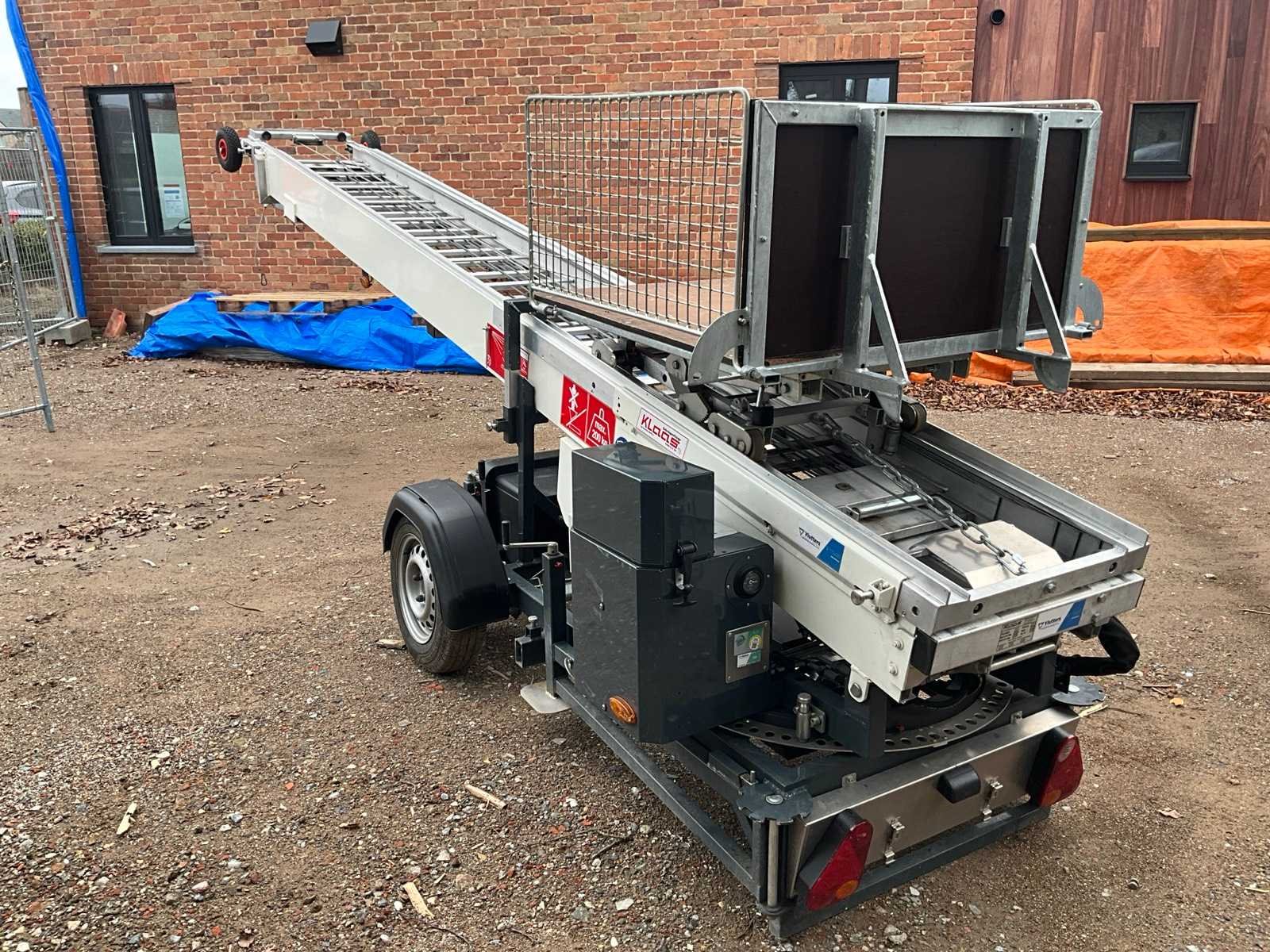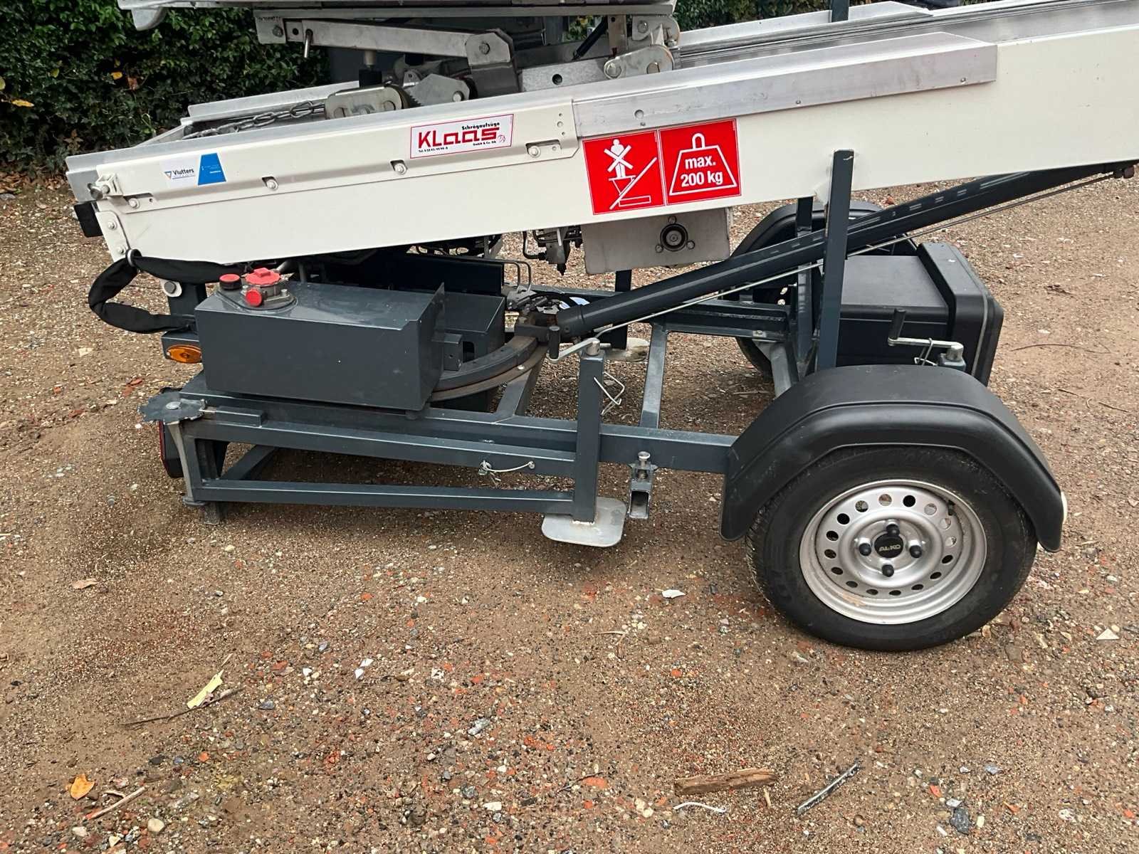 Nee Merk: Klaas Type: Toplicht 21 Bouwjaar: 2023 Serienummer: W09A21175N1KC8104 Max. platformhoogte: 21m Max. belasting: 200kg Plateau afm. l: 940mm Plateau afm. b: 980mm Merk motor: EMGR Motorvermogen (kW): 2.2kW Brandstof: Elektrisch Aansluiting: 230V Eigen gewicht: 750kg Totale afmeting L: 6200mm Totale afmeting Breedte: 1420mm Totale afmeting Hoogte: 1800mm