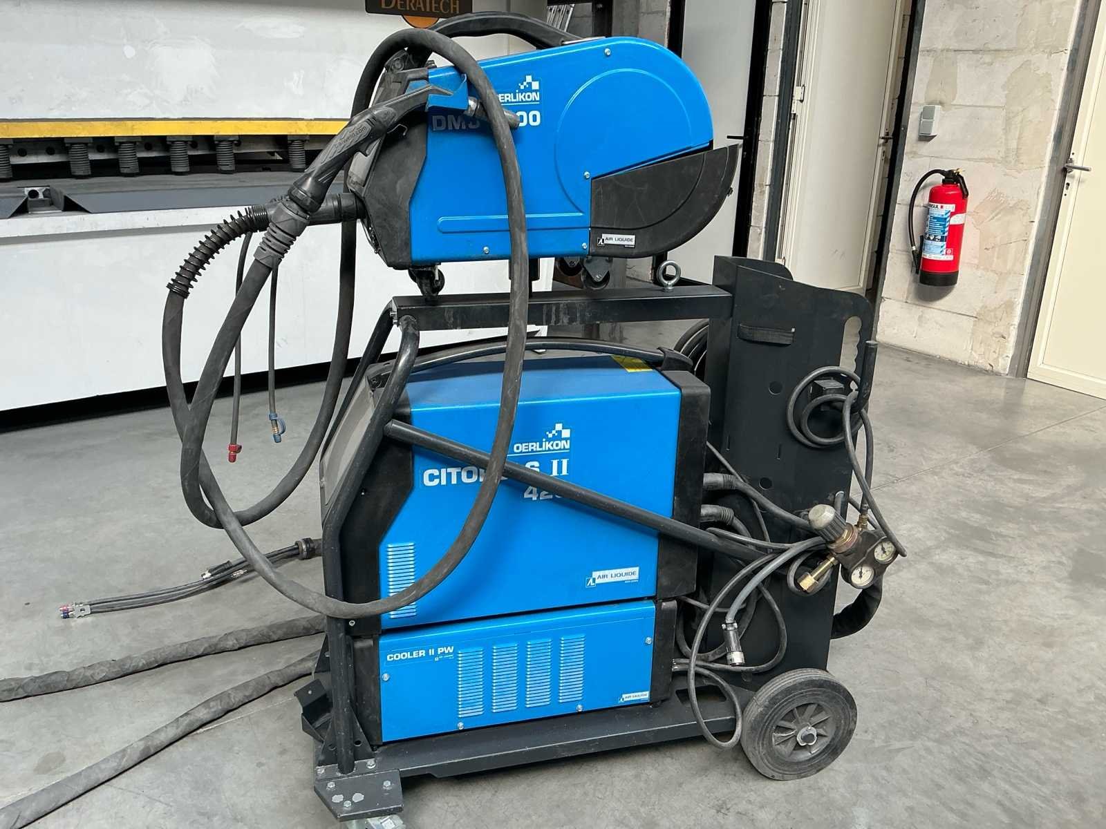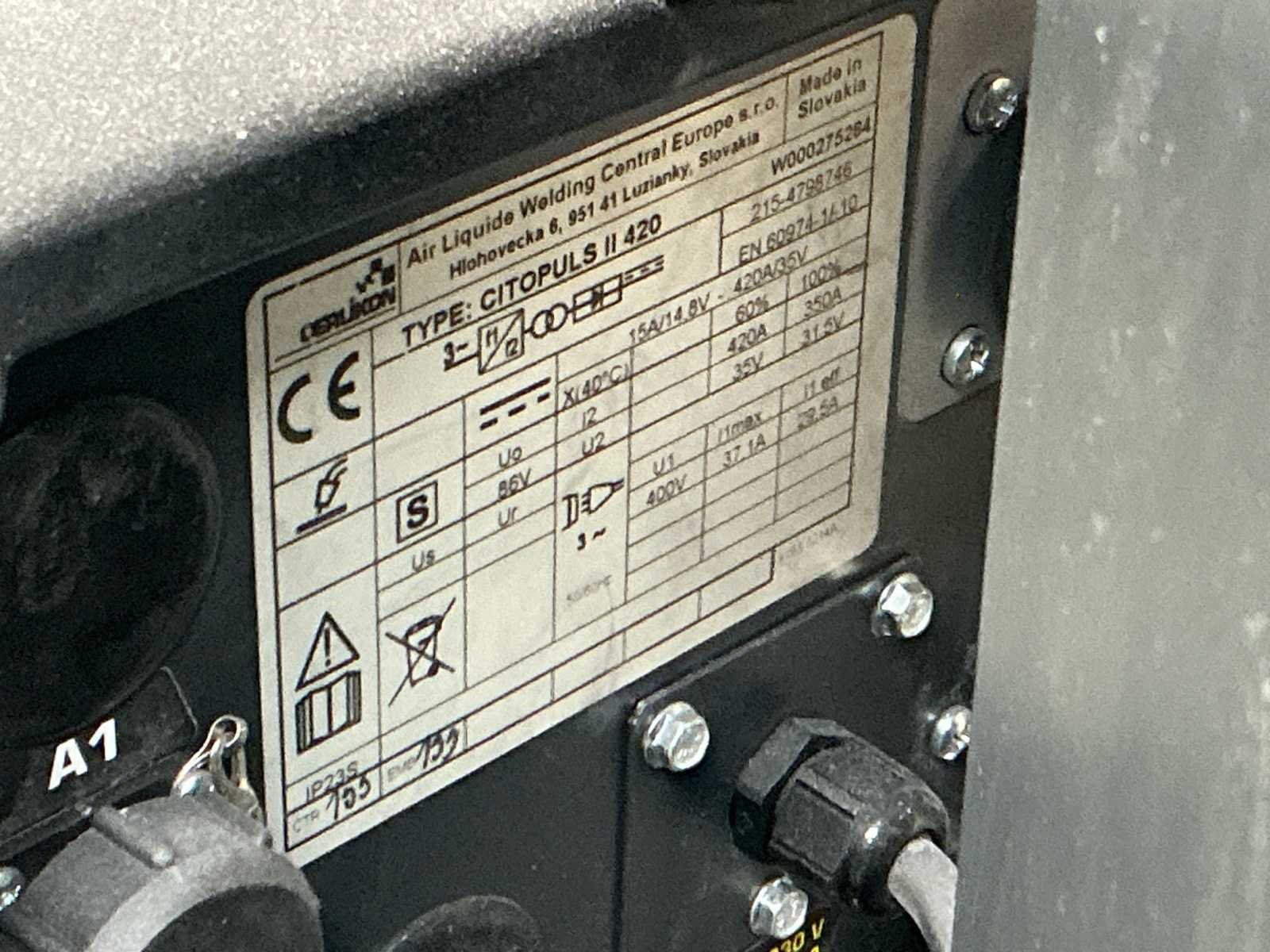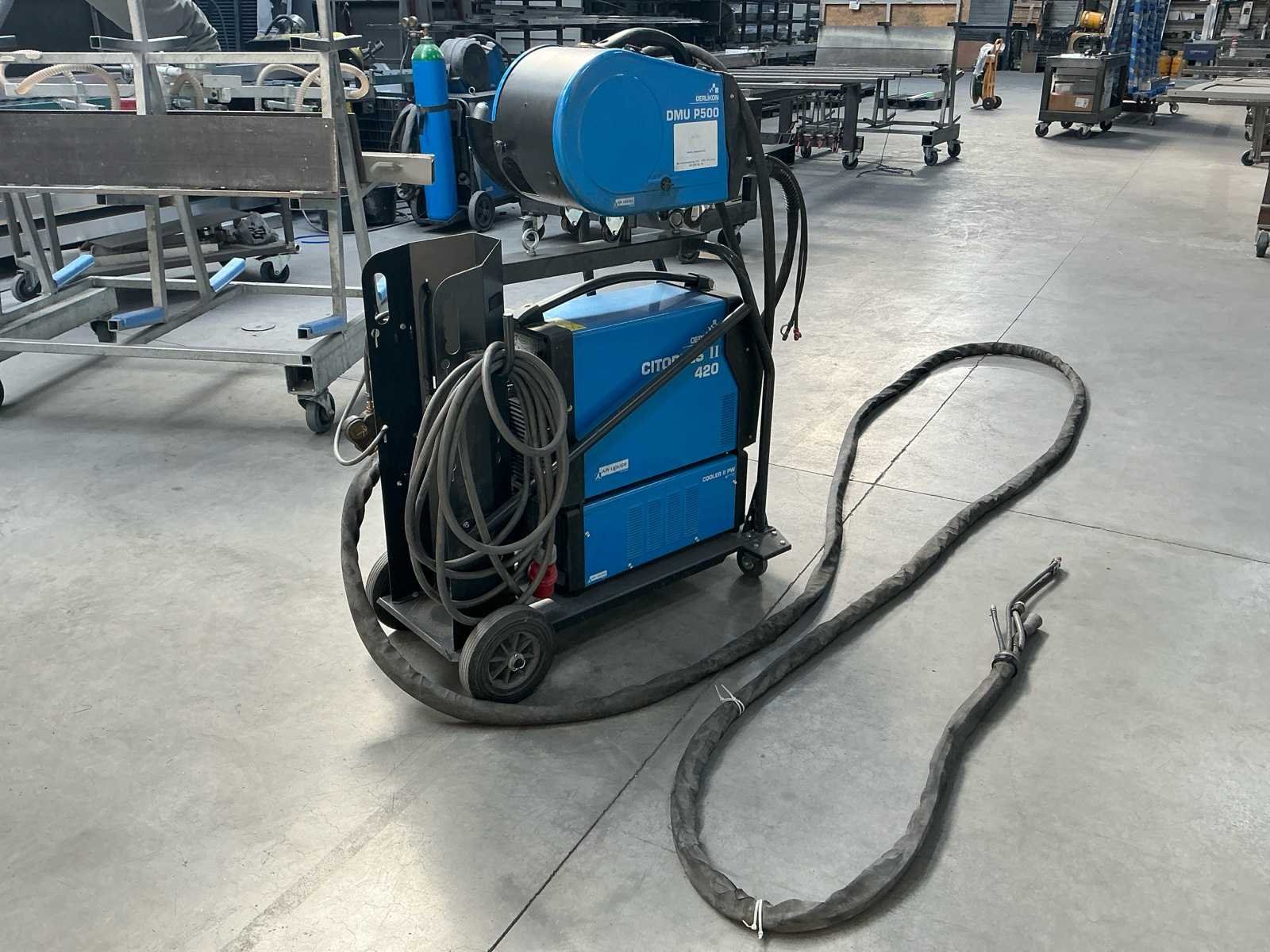 Waterkoeling. 3-fase. 32 Ampere stekker. Lasdraad 1,2mm. Argon gas. Bouwjaar +- 2012. In werkende staat. No Merk: Oerlikon Type: Citopuls II 420 Serienummer: W000273204 Inschakelduur: 60% Max. lasvermogen: 420A Aansluiting: 400V Digitale uitlezing: true Draadaanvoerunit: true Machinegewicht: 80kg Afmeting l: 800mm Afmeting b: 360mm Afmeting h: 620mm
