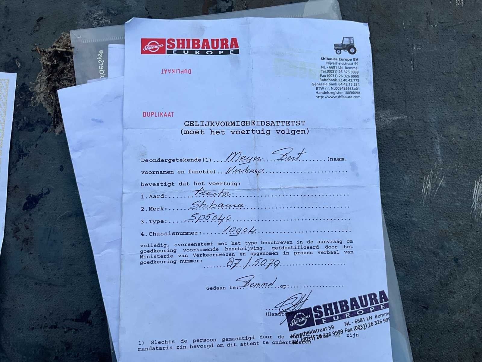 Alle papieren aanwezig Servo stuur 4X4 aangedreven Hoge en lage Vitesse Start en rijd en voert alle functie uit No Merk: Shibaura Type: SP5040 Bouwjaar: 2002 Aantal hydraulische ventielen achter: 2 Cabine: true