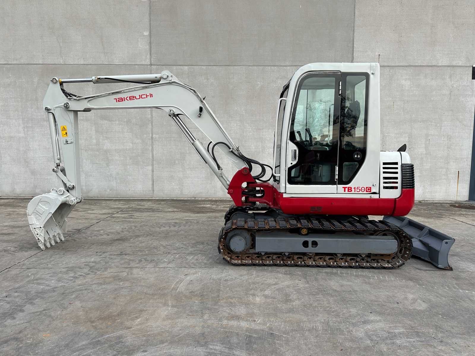 Tandenbak Duwblad Rupsen met rubberpads Geen documenten Nee Merk: Takeuchi Type: TB150C Serienummer: 145113199 Merk motor: Yanmar 4TNV88 Motorvermogen (kW): 27.9kW Aantal cilinders: 4 Brandstof: Diesel Graafbak afm. b: 600mm Rups breedte: 400mm Afgelezen urenstand: 20125 Eigen gewicht: 4740kg Totale afmeting L: 5800mm Totale afmeting Breedte: 1850mm Totale afmeting Hoogte: 2700mm GS Code: 8429521200