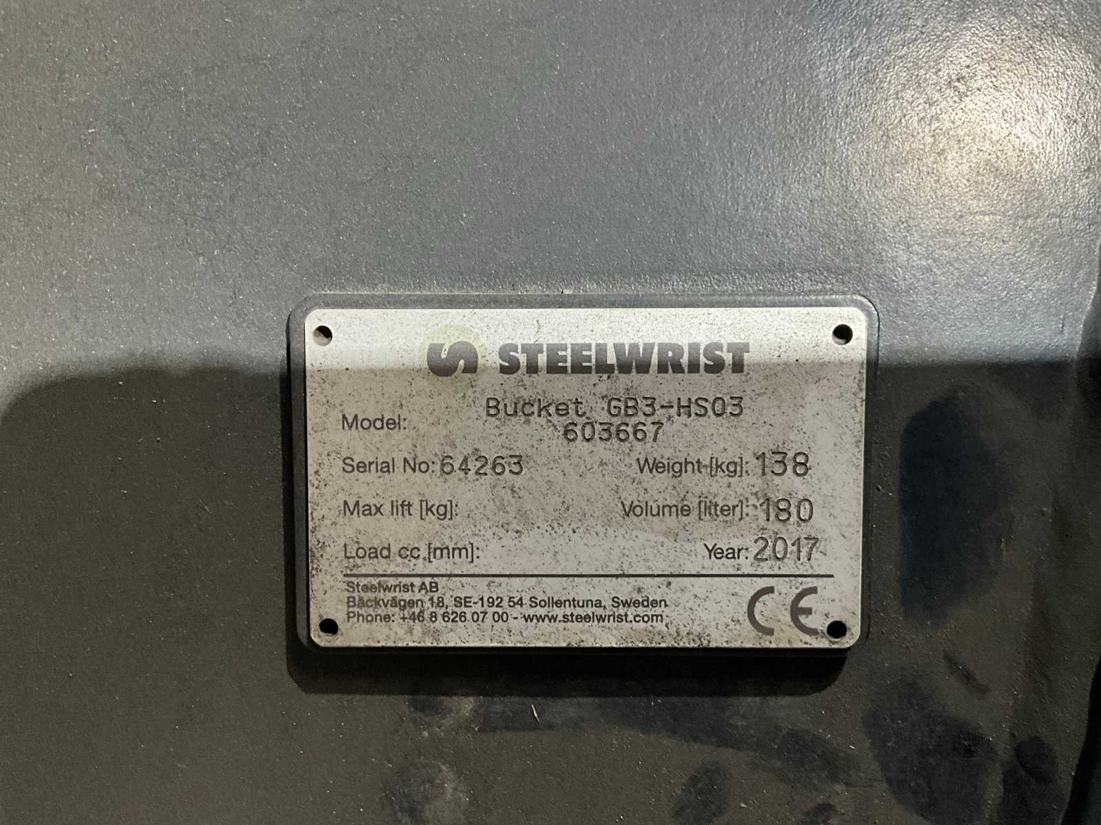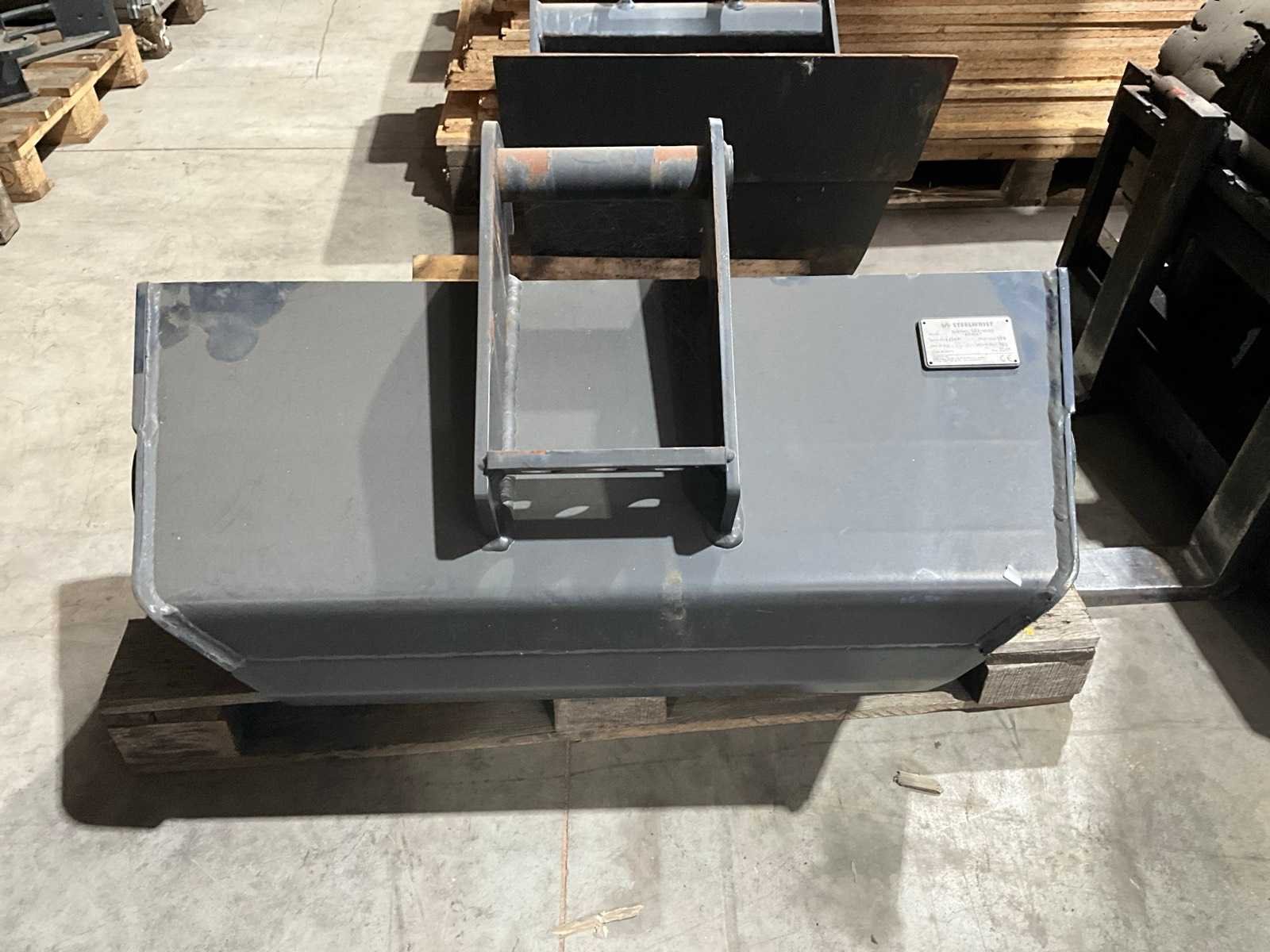 STEELWRIST reinigingsbak met Lehnhoff MS03 koppeling Breedte: 1130 mm Volume: 180 L Gewicht: 138 kg Non Merk: Steelwrist Slotenbak: true Eigen gewicht: 138kg Totale afmeting L: 1130mm