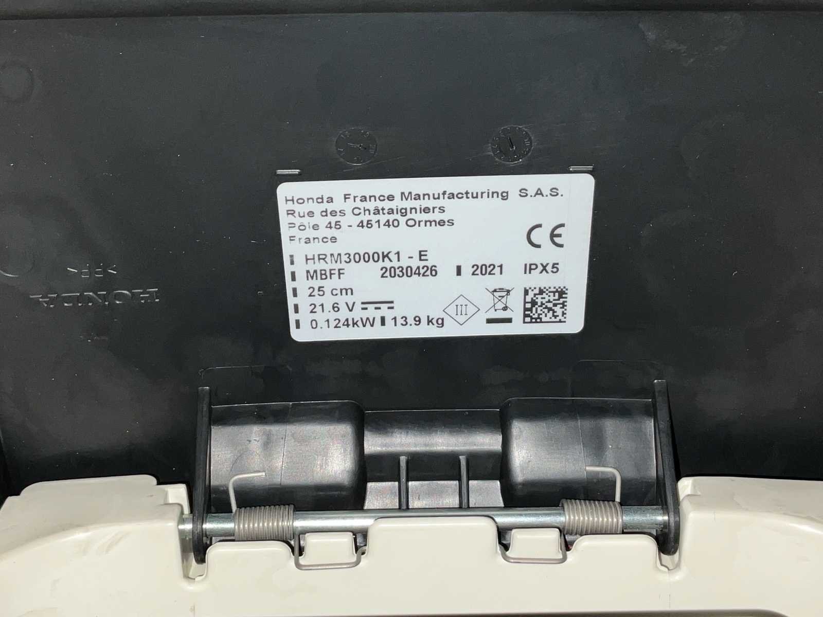 Zonder laadstation en zonder adapter No Merk: Honda Type: HRM3000 Bouwjaar: 2021 Serienummer: 2030426 Werkbreedte: 25mm Eigen gewicht: 14kg
