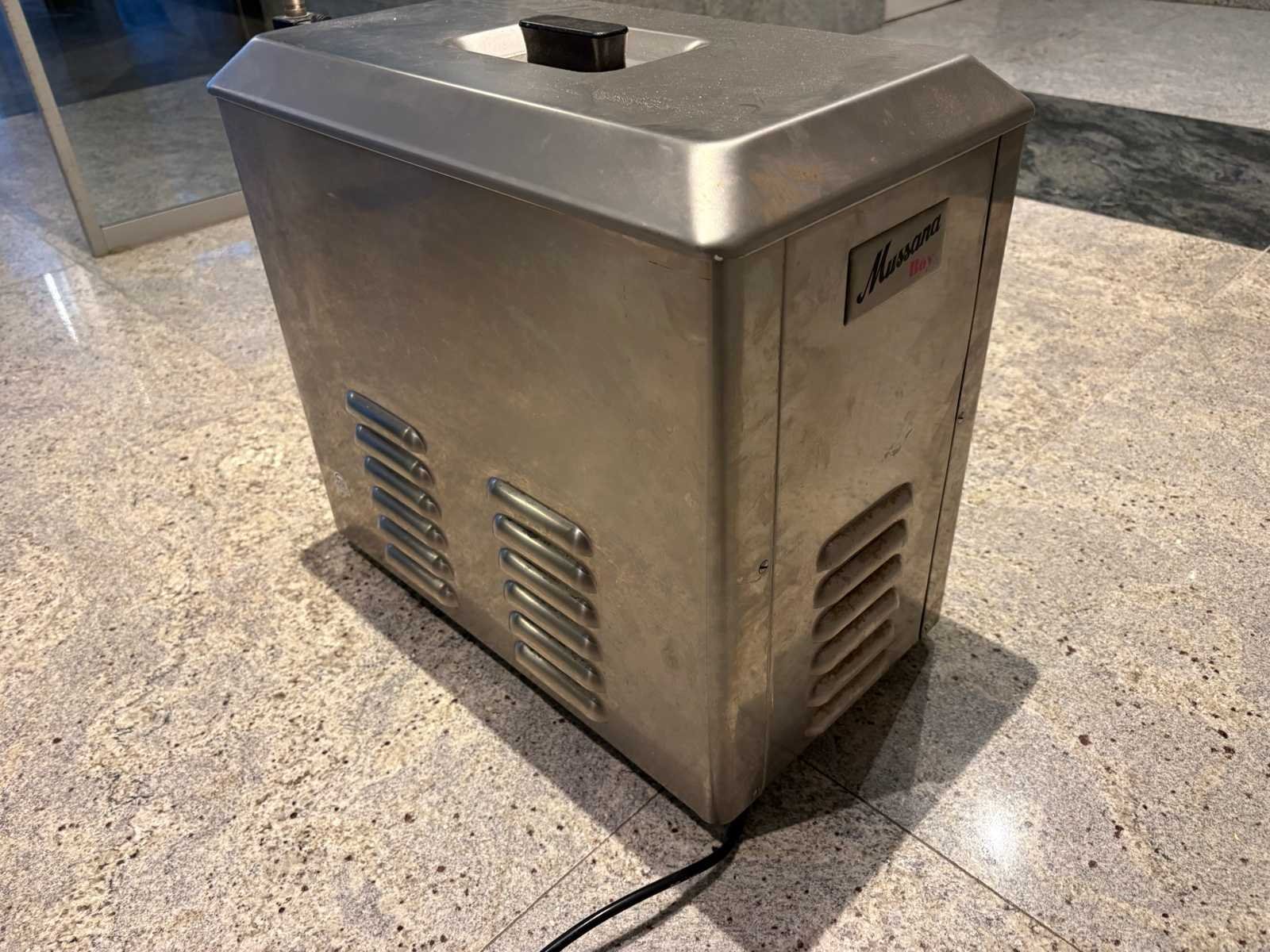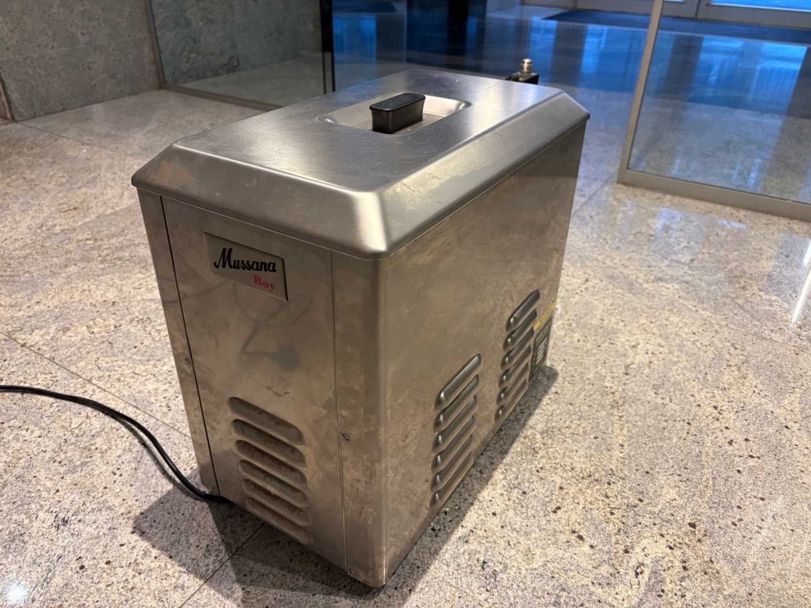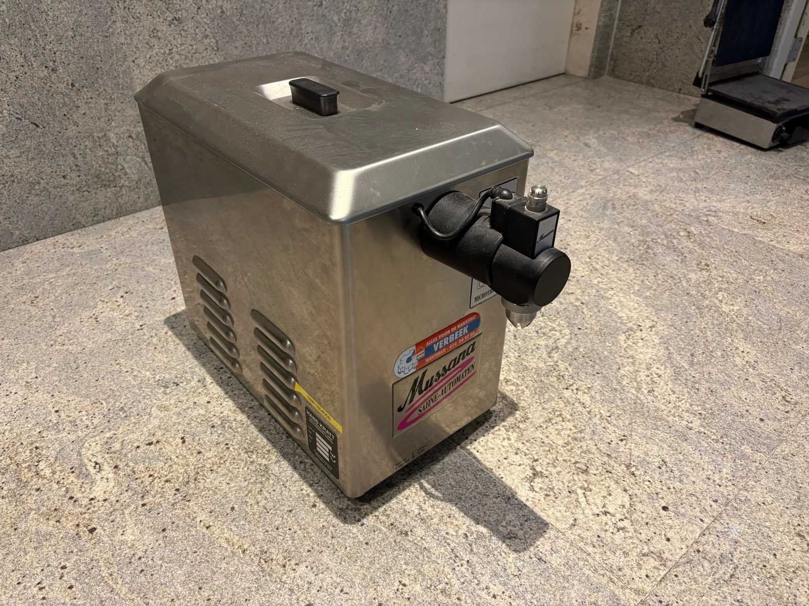 Werkende slagroommachine No Merk: Mussana Serienummer: SBR160405B Aansluiting: 230V Totale afmeting L: 40cm Totale afmeting Breedte: 25cm Totale afmeting Hoogte: 40cm
