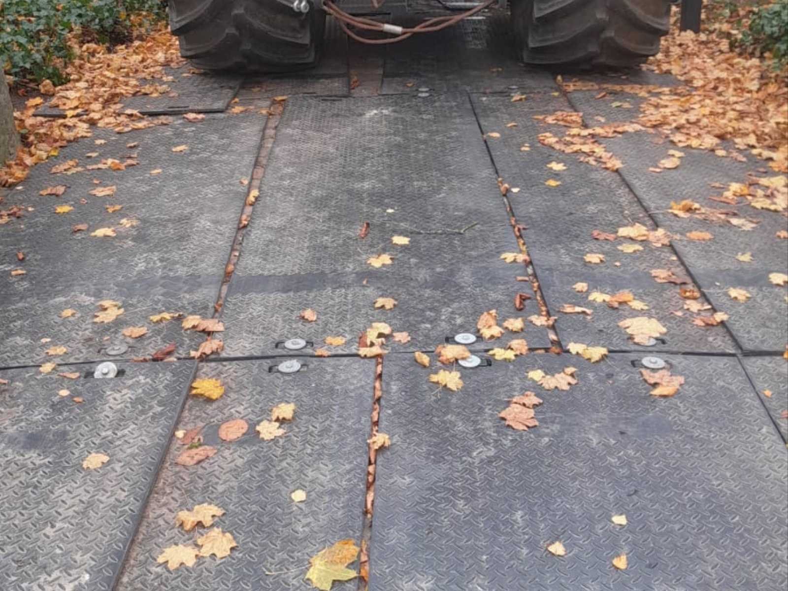 Set rijplaten voor zwaar vervoer. 60 Stuks met 2 rekken. Nee Afmeting l: 3000mm Afmeting b: 1000mm Afmeting h: 150mm Kunststof: true