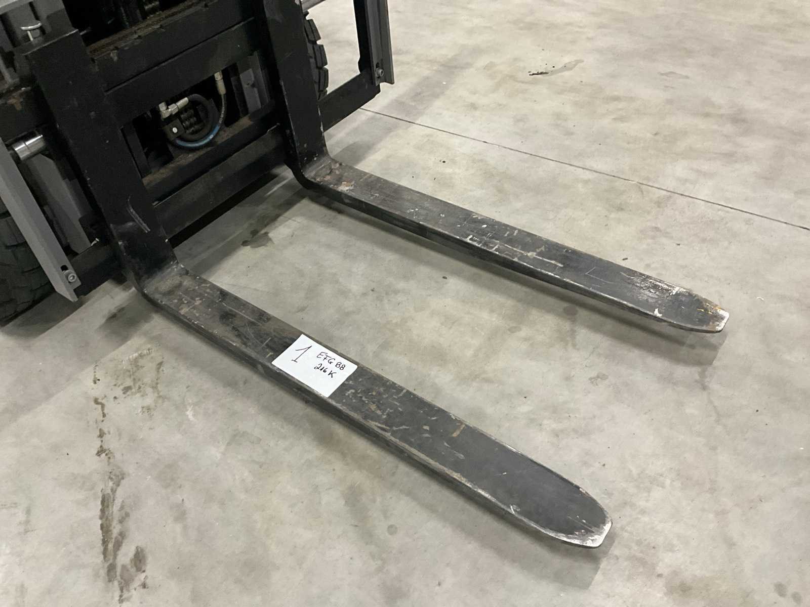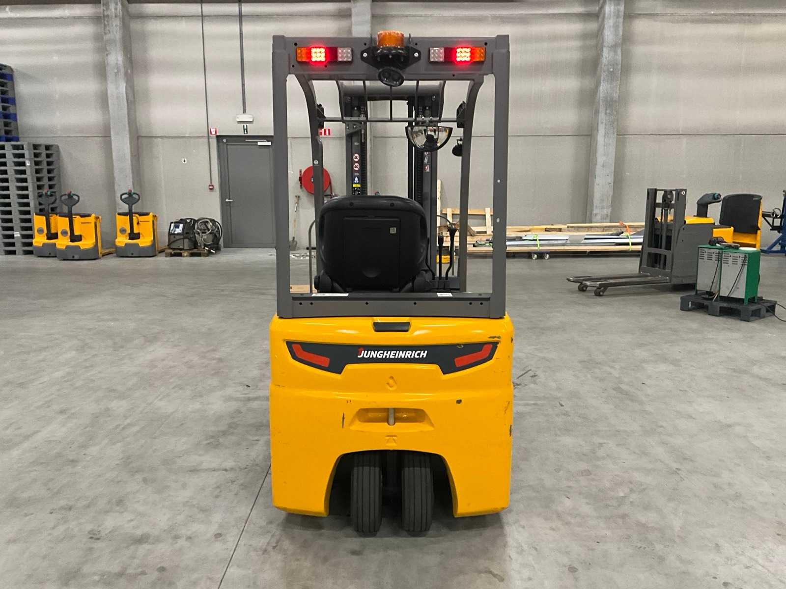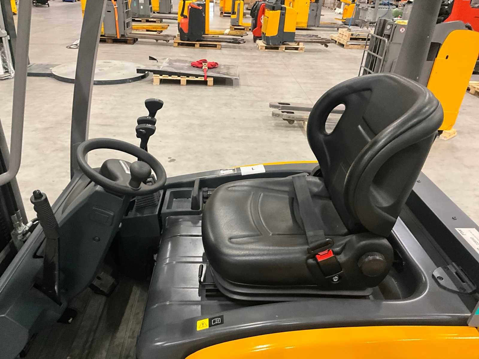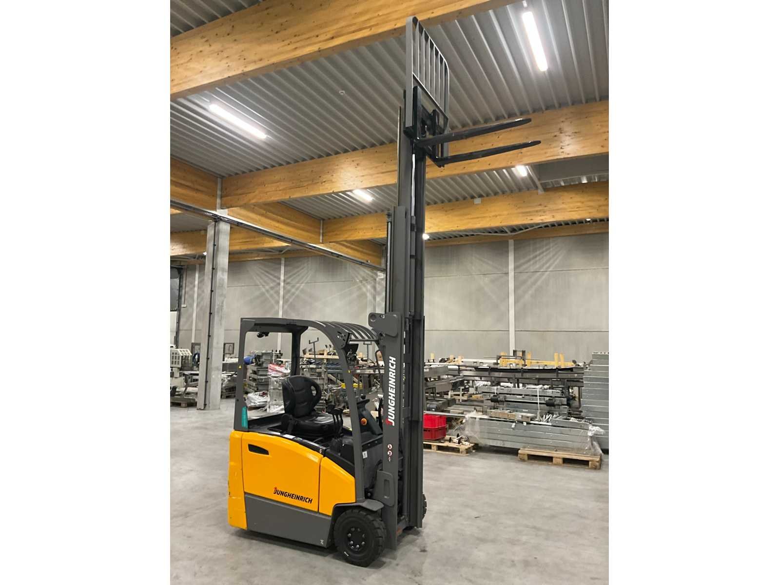 Nee Merk: Jungheinrich Type: EFG BB 216K Bouwjaar: 2023 Serienummer: F5008533 Afgelezen urenstand: 35 Triple mast: true Hefvermogen: 2500kg Lepellengte: 1000mm Max. hefhoogte: 4800mm Vol rubber banden: true Minimale doorrijhoogte: 2100mm