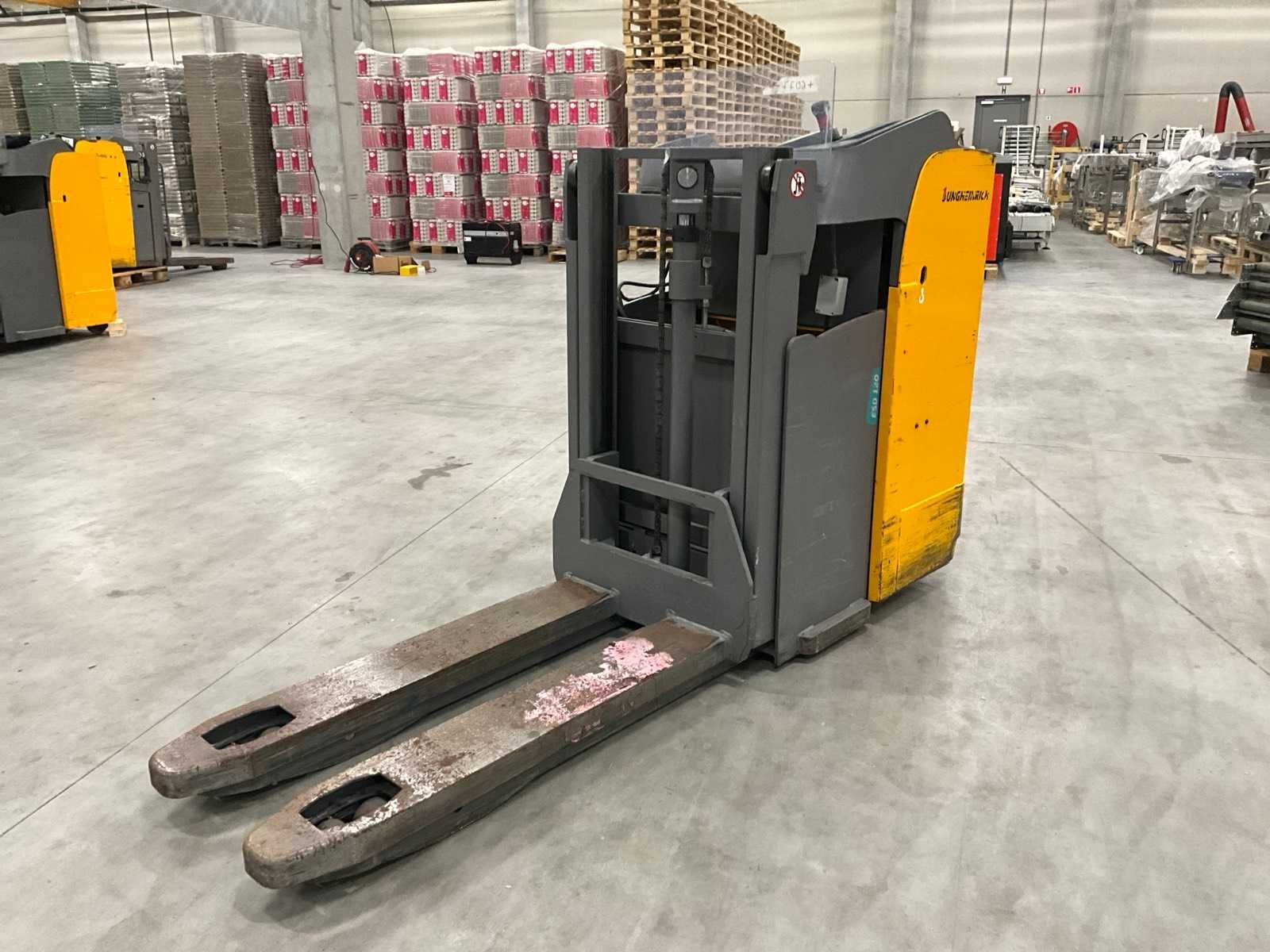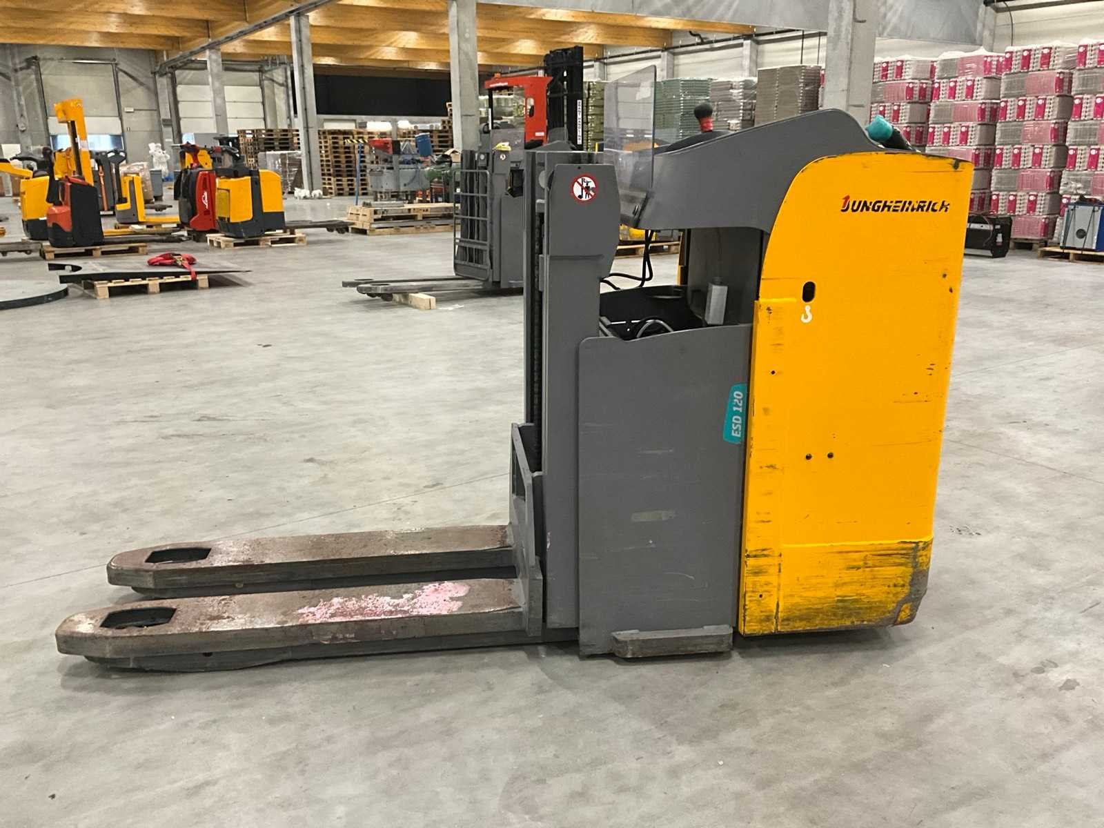 Nee Merk: Jungheinrich Type: ESD 120 Bouwjaar: 2017 Serienummer: 91611459 Hefvermogen: 2000kg Hefhoogte: 1660mm Lepellengte: 1200mm Afgelezen urenstand: 2231 Meerij stapelaar: true
